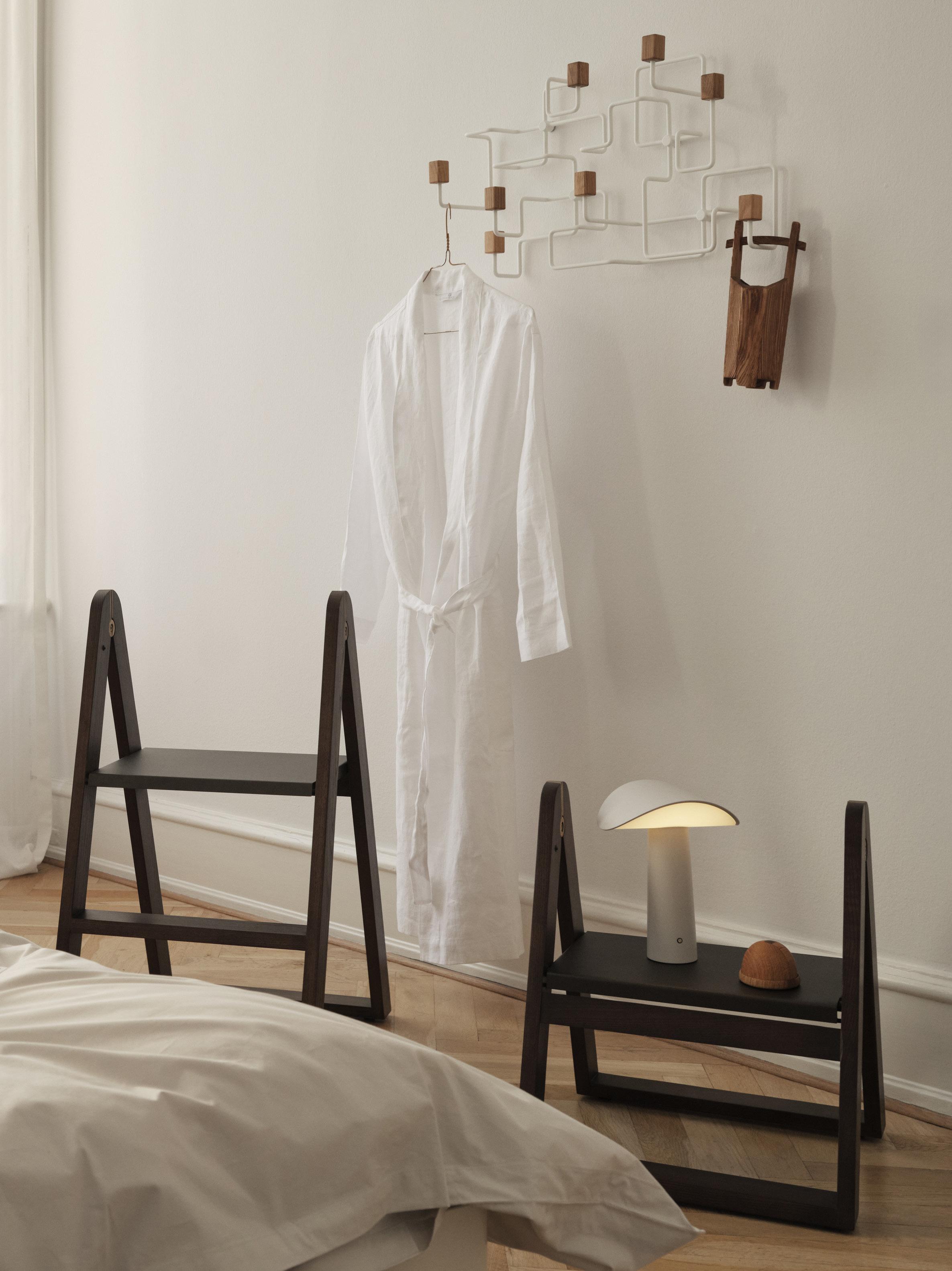 Reech is a timeless and multi-purpose stepladder that will make a positive functional and aesthetic addition to any home that appreciates durable quality design. The stepladder is practical, both in function and design, and is created to make everyday life easier and more beautiful. The design of Reech is thought out in every detail, as exemplified by the innovative joints and solutions that are part of the stepladder. A small, almost invisible magnet keeps the top step in place when the ladder is folded up and not in use. Reech is also an ideal space-saving solution for smaller dwellings. It comes with a practical bracket that lets you hang it on the wall or inside a closet.