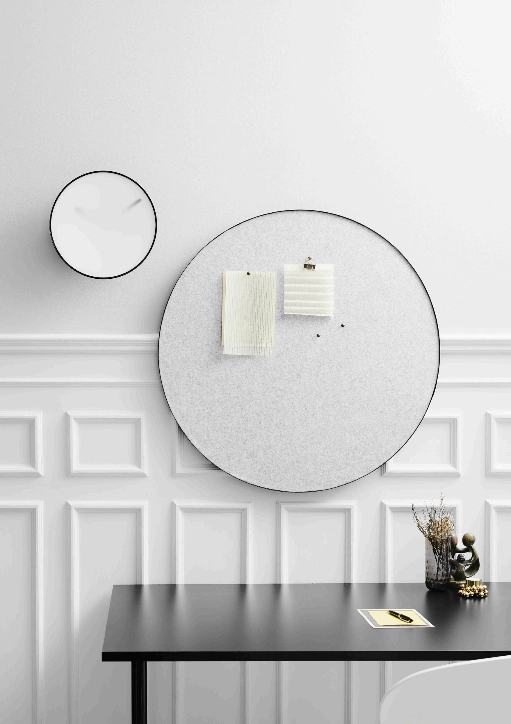 Retell is a cool round pinboard designed by the famous Danish architect house C.F Moller. It is a large pin-board made of a powder coated steel frame and a hard felt surface. Retell is both a cool pinboard to save good memories, notes etc. on, as well as it serves as a sound absorbing object for for example office environments.