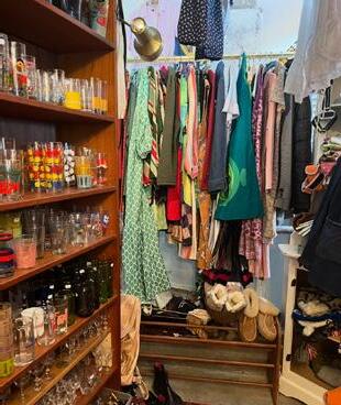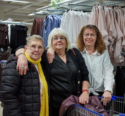 Jag brukar komma hit för att handla kattmat, kattsand och mineraler till hästen. Hästfoder är också så mycket billigare här! För en stund sedan stannade vi till i Sportbaren och tog ett glas vin, och nu är vi på damavdelningen. Jag kollar på linnebyxor, medan mina vänner är helt förälskade i de svarta kostymbyxorna som de köper här regelbundet. Margaretha har redan hittat en ljus vårkofta, och Inger är fortfarande nöjd med tröjan hon har på sig, den köpte hon här för flera år sedan.