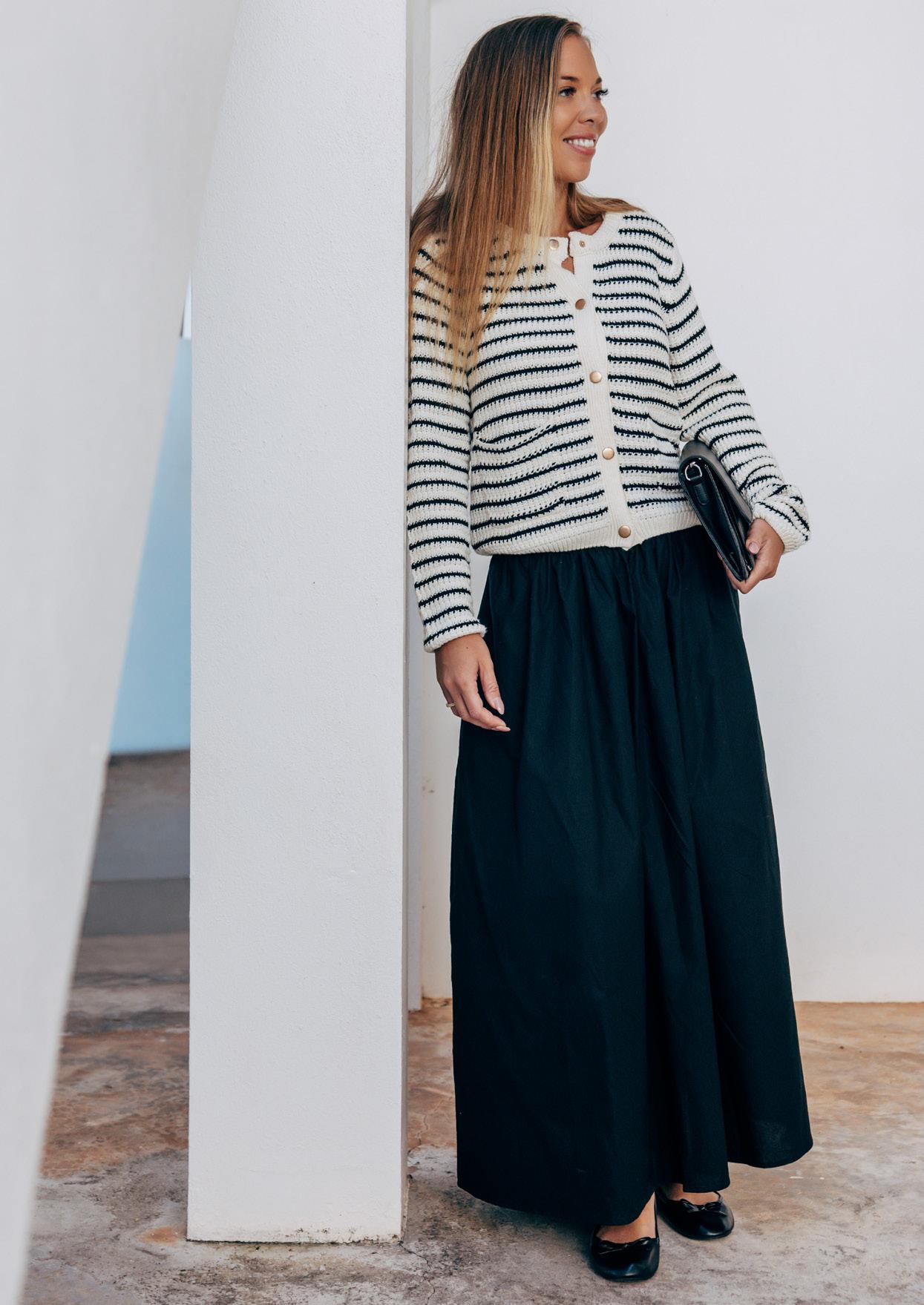 I semesterhemmet har Pernilla bara det hon behöver och försöker minimera garderoben. Även om hon konstaterar att den har en tendens att svämma över, speciellt sedan hennes sommarkollektion börjat plåtas på plats.