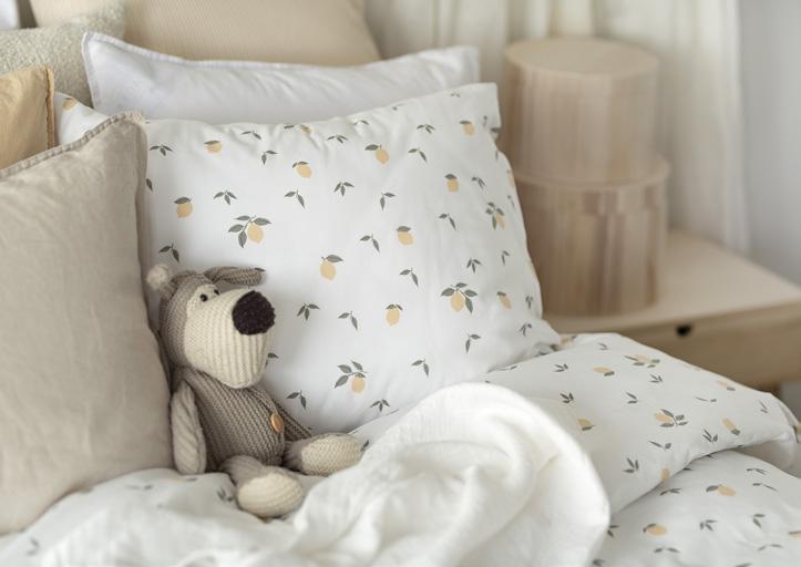 Citrontrenden har letat sig in i sovrummet och ger en frisk och lekfull sommarkänsla.