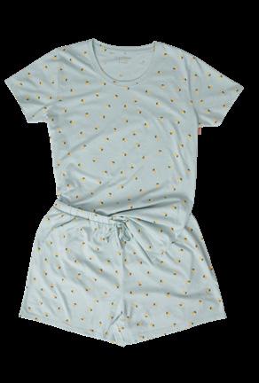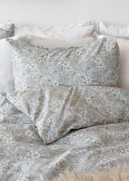 Bäddset i mjuk och skön bomullskvalitet med mönster av björnbär. Den ljusblå tonen är en behaglig färg i sovrummet.