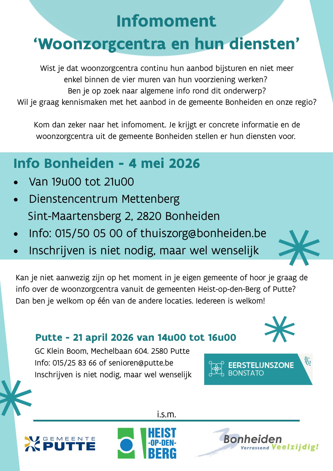 Meer informatie en inschrijven | Sint-Maartensberg 2, Rijmenam dienstencentrum@bonheiden.be - 015 51 49 66