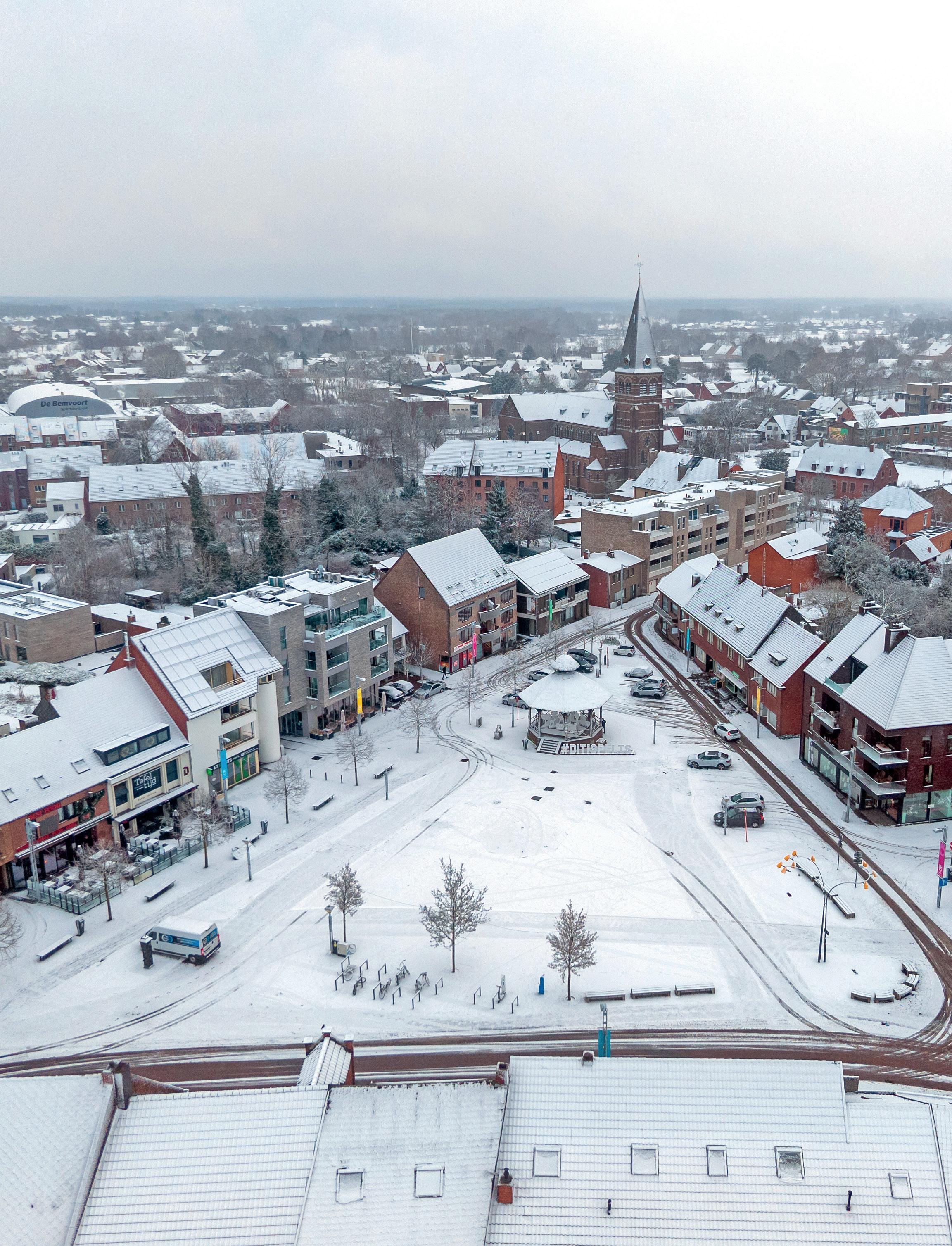 Markt onder een sneeuwtapijt.