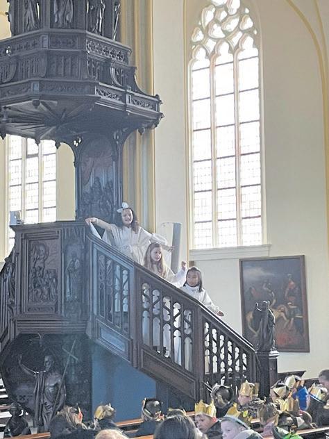laten. Met lege handen arriveerden we tenslotte bij de stal. Daar leerden we dat wat je voor een ander doet, je eigenlijk voor Jezus doet. Na de zegen gingen de kleine koningen met hun “ezels en kamelen” weer naar huis.