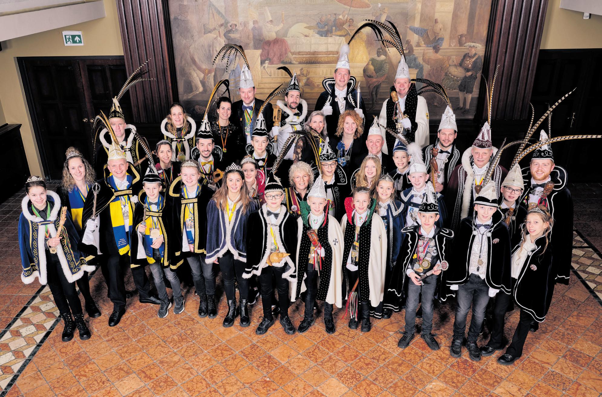 Aan sommige hoogheden is het te zien dat het de avond ervoor laat was. Zo hadden onder meer de Pierewaaiers (Bakel), Teugelders (Beek en Donk) en Ganzegatters (Aarle-Rixtel) hun kletsavond. Maar toch, niemand wil ontbreken op de Prinsenfoto 2023. En zo druppelen de verenigingen een voor een binnen. De bedoeling was om eerst alle prinsen uit Laarbeek op de foto te zetten, daarna die uit het verspreidingsgebied van het GemertsNieuwsblad en daarna nog een met iedereen. Maar omdat de prinsen van Mariahout en Beek en Donk toch wat moeite