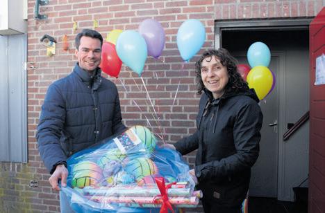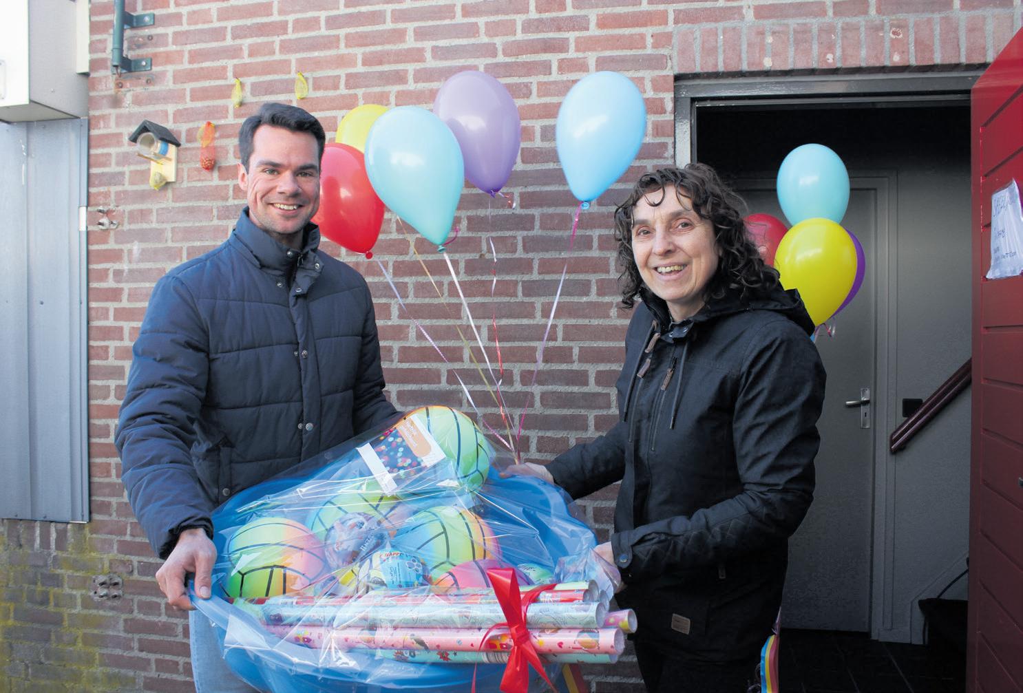Nog voor hij een speciaal lintje doorknipte, overhandigde wethouder Peter Raaijmakers de voorzitter een zandbak gevuld met ballen en inpakpapier. “Want ik hoorde dat jullie dit wel konden gebruiken.”