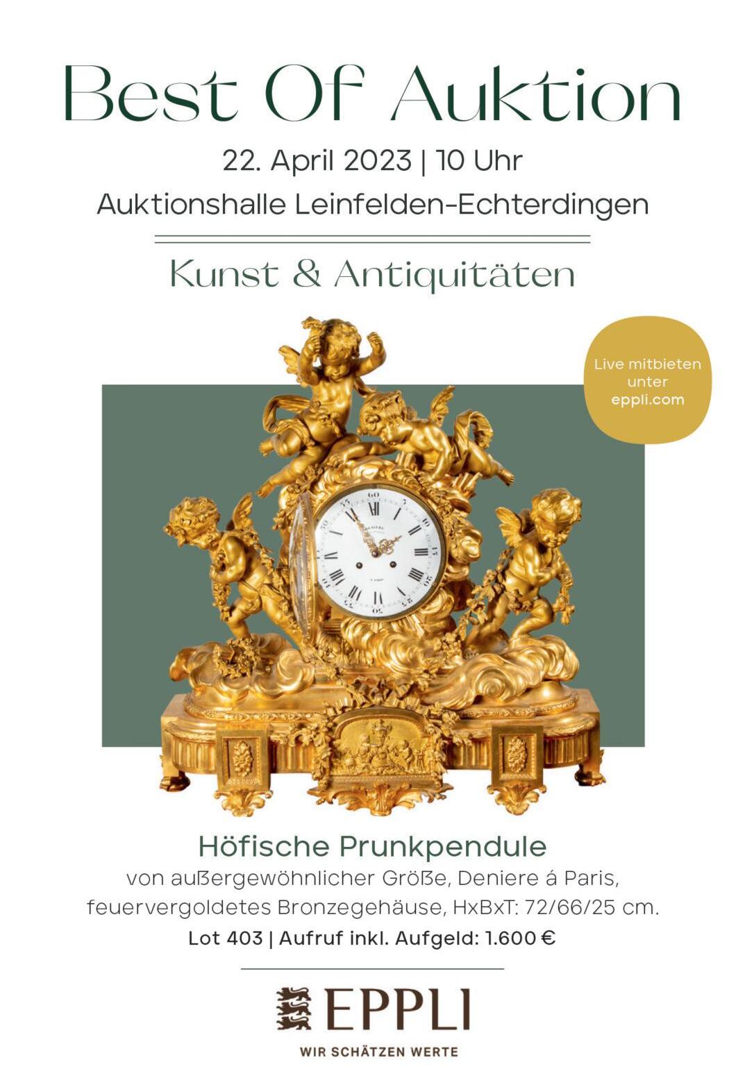 Vom 22 April bis 1 Mai lädt eine der bedeutendsten Kunstund Antiquitätenmessen Niederösterreichs wieder in die prunkvollen Säle des Schlosses Laxenburg Die überaus lange Kontinuität und der große Erfolg dieser Veranstaltung – in diesem Jahr findet sie bereits zum 75 Mal statt – sind sicherlich darauf zurückzuführen, dass sie in erster Linie ihrem Image als klassische Antiquitätenmesse treu geb l i e b e n i s t u n d d e s h a l b a u c h e i n e e x t r e m b r e i t e P a l e t t e a n v e r s c h i e d e n e n Genres bieten kann Aufg r u n d d e r v e r s t ä r k t e n N a c h f r a g e h a t s i c h d i e Messe in den letzten Jahren aber auch der zeitgenössis c h e n K u n s t s e h r e r f o l greich geöffnet Diese Kombination spricht traditionell die Besucher an, die auf der S u c h e n a c h i n d i v i d u e l l e n