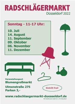 73 Göppingen Freibad Parkpl. Maybachstr. T NMV-Marktag. 07025-840004 73 Kirchheim Güterbahnhof, Schöllkopfstr. ab 8 Uhr T NMV-Marktag. 07025-840004 74 Öhringen BÄKO-Gelände T NMV-Marktag. 07025-840004 75 Bad Wildbad im Kurpark, Kuranlagen Allee T rt-Märkte 07051-933494 76 Bruchsal-Heidelsh. Parkpl. Autohof Herzl T Friedt 07251-88077 76 Germersheim Real, Mainzer Str. T Friedt 07251-88077 76 Karlsruhe Messplatz Durlacher Allee T Timke 07147-13399 76 Karlsruhe Bannwaldallee/nähe Metro Halle & FG T Mercado 0170-5873487 76 Landau C+C Großmarkt ab 15 Uhr T Reis 0172-6207756 78 Konstanz Bodenseeforum Antik- u. Trödler A T 1.T. Weickmann 07121-4100470 79 Freiburg Messehalle T 2.T. SüMa Maier 07623-741920 79 Lörrach Rathausplatz T Stadt 07621-4150 80 München-Riem Messe, De-Gasperi-Bogen T Hartl 089-46255536 82 Peißenberg Tiefstollenhalle ab 12 Uhr T Fiebig 08803-4903274 84 Ergolding Festplatz, Schinderstraßl (keine Neuware) T Ansorge 0871-62378 87 Pforzen Halle, Auf den Auen T 1.T. Blösch 0170-5580008 88 Riedlingen Festplatz T NMV-Marktag. 07025-840004 89 Heidenheim Volksfestplatz T Enkler 09852-908975 90 Nürnberg Flughafen Grossparkpl. P31 T Graage Gbr 0175-2080762 91 Herrieden am Autohof A6 ab 11 Uhr T 1.T. Enkler 09852-908975 94 Bad Füssing Obere Inntalstr. T Auto Augenstein 0170-4341290 SONNTAG 19. MÄRZ 2023 10 Berlin Str. des 17. Juni T 2.T. Wewerka 030-26550096 10 Berlin Berlin Ostbahnhof A T Oldthing 030-29002010 10 Berlin IKEA Südkreuz T Flohdom/Kreaktiva 04827-2479 10 Berlin-Marienfelde Metro, Buckower Chaussee T Höfges 02151-6591717 10 Berlin-Spandau Metro, Nonnendammallee T Höfges 02151-6591717 16 Finowfurt Real T Janssen Ost 0172-4567844 17 Greifswald Elisen-Park T Janssen Ost 0172-4567844 20 Hamburg REWE, Walddörferstr. T Menschen & Märkte 040-53004711 23 Lübeck Hagebaumarkt, Bei der Lohmühle T Hochberg 04102-31939 24 Kiel-Neu Meimersdorf Famila T Hochberg 04102-31939 24 Rendsburg Famila am Kreishafen Kreishafenstr. T Horst, K.-P. 04821-4700 25 Husum Schloss Kunsthandwerk 2.T. Baum, Elke 04154-2037 26 Papenburg Kesselschmiede Madame Floh T Sparringa 0491-9791111 26 Westerstede Famila T Janssen 04402-86384-0 28 Bremen-Zentrum Hansa Carre T Breminale GmbH 0421-500503 29 Celle CD-Kaserne A T Grimm, Michael 0176-23122855 30 H.-Altwarmbüchen A2 Center Möbel Höfner, Opel Str. (keine Neuware) T Bassi 0511-4382761 32 Detmold toom-BauMarkt Charles-Lindbergh-Ring T Seyfried 0171-2094993 36 Alsfeld Hessenhalle & FG Antik- & Sammlermarkt A T 1.T. Yilmaz 0157-74032817 40 Langenfeld Kaufland, Rheindorfer Str. T Melan West 02401-8048840 40 Ratingen Ratio, Daniel-Goldbach-Str. T Melan West 02401-8048840 41 Neuss Möbel Höffner T Melan West 02401-8048840 42 Haan hagebaumarkt T Rieder Agentur 02432-8928988 42 Solingen Neumarkt T Rieder Agentur 02432-8928988 45 Datteln Hornbach Walter Sauer Str. T Vogt, Sven 0151-11646999 45 Essen Globus, Haedenkampstr. T Melan West 02401-8048840 46 Bottrop Ostermann, Ruhrölstr. T Melan West 02401-8048840 46 Dorsten POCO, Marler Str. T K & D Märkte 0209-982890 46 Wesel Am Schornacker T Beenen 02152-1591 46 Xanten Edeka Sonsbecker Str. T Vogt, Sven 0151-11646999 47 Tönisvorst Globus Höhenhöfe T Höfges 02151-6591717 48 Emsdetten Autohaus Opel Elmer Kunsthandwerk Grawe 05481-6358 49 Ibbenbüren Marktkauf teilüberdacht T Renes Märkte 05276-9867237 49 Lastrup Marktplatz T H Uwes Märkte 0175-5931774 49 Osnabrück-Hellern Kaufland T H & H Märkte 0175-9859999 50 Köln-Marsdorf Roller, Max-Planck-Str. T Melan West 02401-8048840 50 Köln-Nippes Wilhelmplatz T Cölln Konzept 0221-235365 50 Köln-Porz Autokino Porz, Rudolf-Diesel-Str. T DWJ GmbH 08151-90340 50 Köln-Weidenpesch Pferderennbahn Parkplatz T Dollmann, N. 0221-557759 50 Pulheim Segmüller T Melan West 02401-8048840 51 Bergneustadt REWE, Stadionstr. T Grote & Hiller 02293-539 52 Eschweiler HIT-Markt T Bamberger, Mario 02403-10115 52 Würselen Kaufland Schumanstr. T Melan West 02401-8048840 53 Sankt Augustin Metro, Einsteinstr. T Melan West 02401-8048840 53 Troisdorf-Sieglar Hit, Spicher Str. T Grote & Hiller 02293-539 57 Siegen-Weidenau OBI, Weidenauer Str. T G.S. Märkte 0271-48532933 58 Halver Bauzentrum Lieder T Tommy Entert. 0171-8338898 58 Iserlohn Hemberg Parkpl., Baarstr. T G.S. Märkte 0271-48532933 59 Soest Kaufland T Renes Märkte 05276-9867237 63 Erlensee Toom Parkpl. (keine Neuware) T biggmarket 06181-4134117 64 Darmstadt HORNBACH T Weickmann 07121-4100470 64 Weiterstadt Metro, Im Rödling T Melan Rhein-Main 02401-8048850 65 Limburg Globus Mundipharmastr. T Melan Rhein-Main 02401-8048850 66 Saarlouis auf dem Großen Markt ab 11 Uhr (keine Neuware) T Mailänder 0171-6274976 75 Dobel Kursaal, Neue Herrenalberstr. T MaRo-Veranstalt. 07154-1550843 77 Zell Kanzleiplatz und Turmstr. (keine Neuware) T Lehmann, Josef 07835-540766 78 Konstanz Bodenseeforum Antik- u. Trödler A T 2.T. Weickmann 07121-4100470 85 Schweitenkirchen Parkplatzgelände, Liebigstr. (keine Neuware) T Event & Catering 0163-1835656 86 Donauwörth Toom Baumarkt neben Kaufland T Enkler 09852-908975 86 Mertingen Penny Parkpl. Schutterfeld T Becker 0151-54765640 87 Pforzen Halle, Auf den Auen T 2.T. Blösch 0170-5580008 90 Nürnberg REWE, Gebersdorfer Str. T Graage Gbr 0175-2080762 91 Herrieden am Autohof A6 T 2.T. Enkler 09852-908975