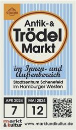 A = Antikmarkt • T = Trödel- und Flohmarkt • H = Handwerkermarkt MONTAG 1. APRIL 2024 06 Ditfurt Höfe des Heimatmuseums T 3.T. Franz 0171-3242923 08 Aue Simmelcenter T 2.T. Marktunion 0173-5955565 08 Zschorlau ECE T Mörstedt 0173-5931598 09 Chemnitz an der Eissporthalle (keine Neuware) T 2.T. Lampert Ost 03445-7387985 14 Bad Belzig Turnplatz T 3.T. DaCapo 0174-1709218 15 Rangsdorf Südring-Center T Janssen Ost 0172-4567844 16 Biesdorf Biesdorf Center A T Trödelfreunde e.V. 030-3633010 19 Schwerin-Warnitz Margaretenhof T 2.T. Haase 0174-9817154 20 Hamburg Museum der Arbeit T Marktkultur 040-2702766 22 Norderstedt Schmuggelstieg T Menschen & Märkte 040-53004711 23 Dahme Nystedtplatz Kunsthandwerk 3.T. Baum, Elke 04154-2037 23 Lübeck Campus Center T Hochberg 04102-31939 23 Travemünde Fährplatz Kunsthandwerk 3.T. Baum, Elke 04154-2037 24 Kaltenkirchen Festplatz an der Holsten-Therme T Horst, K.-P. 04821-4700 24 Neumünster Holstenhallen Freigel. T 2.T. Groneberg 04121-4752809 ANZEIGENSCHLUSS MAI-AUSGABE ist DONNERSTAG, 04IAPRIL