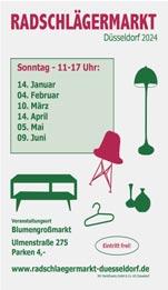 Freiberg Palazzo Parkpl. Ruitstr. T 1.T. NMV-Marktag. 07025-840004 76 Karlsruhe-Grötzingen Parkpl. VFB Grötzingen T Timke 07147-13399 76 Sinzheim real-Markt Industriestr. T Scheppe 0170-9310044 79 Titisee Kurhaus A T 1.T. Birg 0151-55300042 SAMSTAG 18. MAI 2024 01 Dresden an der Albertbrücke Elbeflohmarkt T DDV Sachsen 0351-48642443 02 Dürrhennersdorf Rittergut, Hauptstr. T 1.T. Schwarz, Y. 0179-7944191 04 Leipzig Galopprennbahn Scheibenholz Rennbahnweg A T 1.T. Scheibenholz 0341-33730063 06 Petersberg Festplatz T 1.T. Hansen 06424-6191 07 Gera-Trebnitz Globus T Samaro 01522-2569962 08 Eibenstock Marktplatz T Marktunion 0173-5955565 08 Zwickau Platz der Völkerfreunschaft T 1.T. Mörstedt 0173-5931598 10 Berlin Str. des 17. Juni T 1.T. Wewerka 030-26550096 Trödelmarkt Aachener Platz Düsseldorf Jeden Samstag Trödelmarkt Aachener Platz Düsseldorf Jeden Samstag 45 Jahre 45 Jahre Antik-, Kram- und Trödelmarkt Zelthalle (1500qm) Freigelände Cappucino-Bar Live-Musik www.troedelmarkt-aachenerplatz.de 0211 - 154548 ANZEIGENSCHLUSS MAI-AUSGABE ist DONNERSTAG, 04IAPRIL