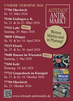 FÜR TRÖDLER • SAMMLER JOURNAL • FLOHMARKT REVUE Termine Termine APRIL + V APRIL + V orschau orschau MAI MAI 2026 2026 Für die tatsächliche Durchführung der uns gemeldeten Veranstaltungen können wir keine Gewähr übernehmen! Bitte rufen Sie vor der Anreise immer beim Veranstalter an! Fettgedruckte Terminzeilen weisen auf Inserate der jeweiligen Veranstalter in diesem Heft hin!
