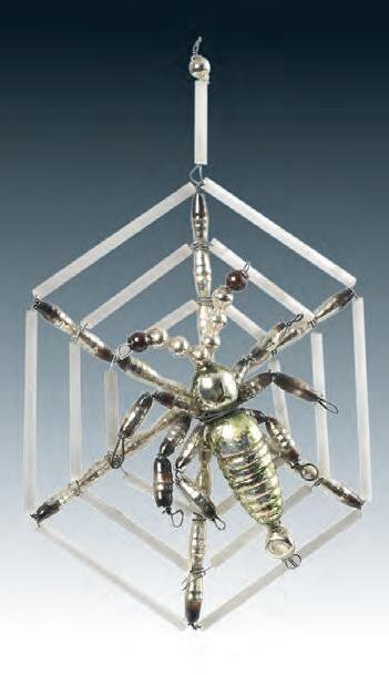 Sehr dekorativ im Netz –die Spinne am Weihnachtsbaum; Spielzeug Welten Museum Basel (CH)
