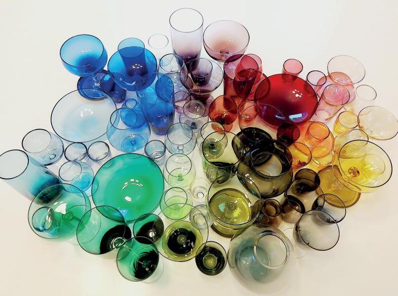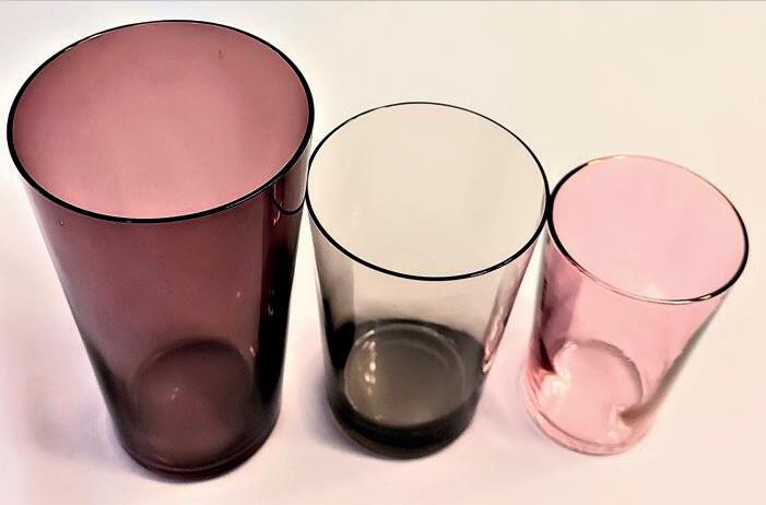 Es gab Gläser in nahezu allen Farben des Regenbogens, häufig in sechs verschiedenen, und in unterschiedlichen Helligkeiten, mit ebenfalls gefärbten oder durchsichtigen Stielen, je nach Design Wer nur eine Farbe bevorzugte, konnte das grau oder dunkel getönte „Rauchglas“ kaufen oder das beliebte „Turmalin“ wählen