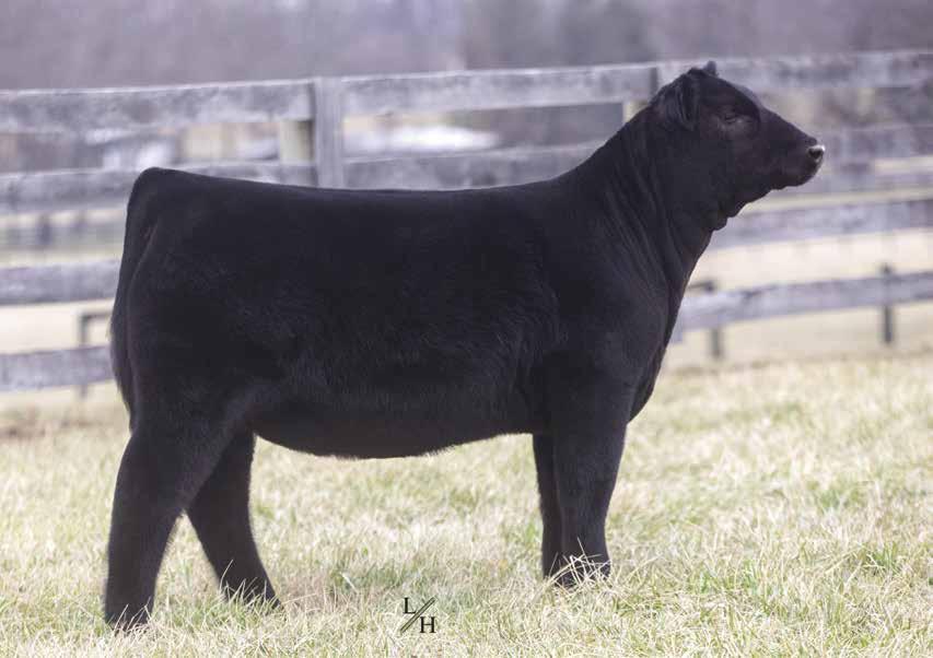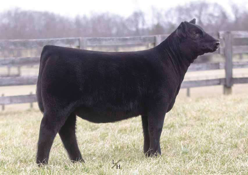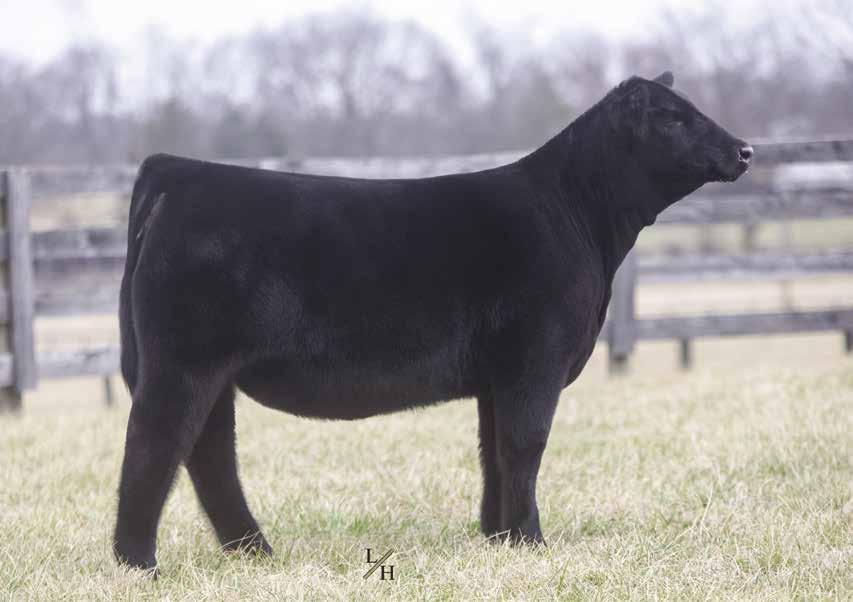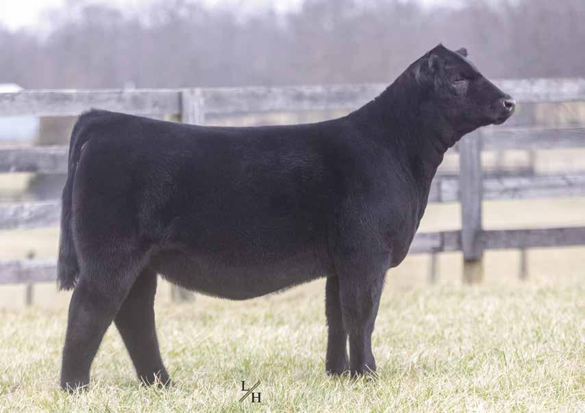 This is one that people will go crazy about sale day. She gets better weekly! The combination of Gibbs Essential on the Candy Cane cow, who descends from Miley Cottontail and the famous JM BF H25 line, really worked. This one is disposition plus, being super easy to be around and is genomic gold with 12 EPD traits in the top 50%. She epitomizes what selection for balance can result in; excellent, functional cattle that are easy to look at and profitable to raise. Her mating to Point Proven will only build on that. Check her out sale day - she will be a favorite!