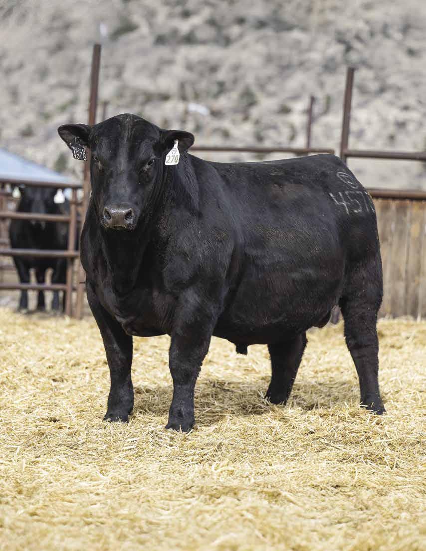 High-performing, age-advantaged Wildcat son and flush brother to Lot 270 from the proven Bachel Beauty cow family. His dam has produced seven Midland graduates and numerous top sellers. He combines double-digit calving ease with triple-digit marbling. Jocko Valley Angus, MT has had great success with two sons of the Bachel Beauty 5071 donor. Her sons consistently add length, extra stature, and muscle, giving them the power and frame to sire scale-crushing calves that drive added payweight