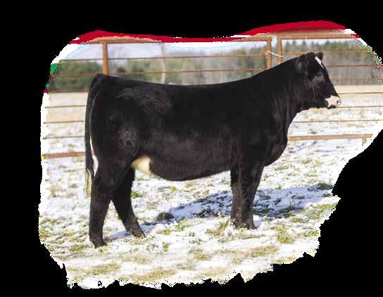 BFJV Rose N167 (Lollipop) is a blazed faced female that offers a look of quality and style about her front one third that is simply unmatched. She is long bodied, square hipped, and massive pinned. She is backed by Tecumseh, the popular sire that commanded $620,000. Her dam BFJV MS Bankroll G36 has produced multiple high-quality calves. It’s hard to deny the shear quality and substance that Lollipop brings to the equation.
