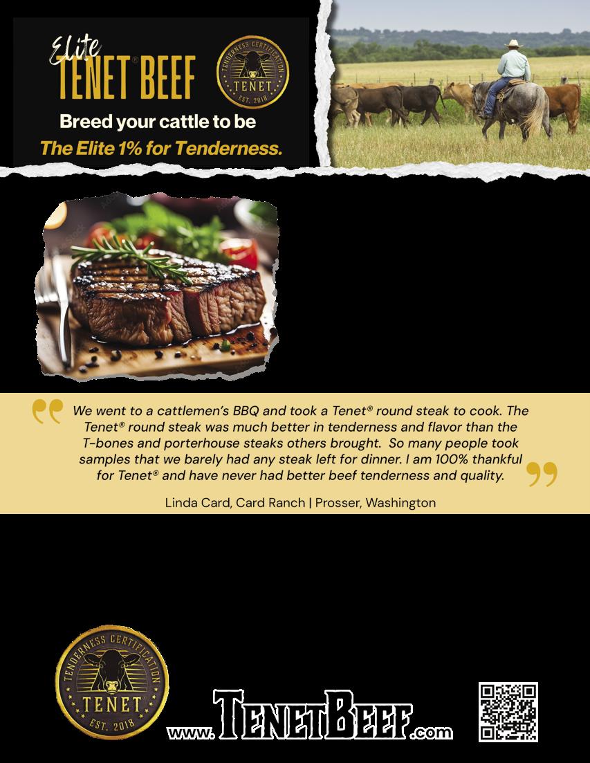 The final layer of value? He qualifies as a Tenet bull, ensuring his influence doesn’t stop at the sale ring. His genetics are designed to improve the consumer eating experience, carrying value all the way from the cow-calf producer to the finest steakhouse table.