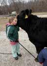 Wow! A purebred Simmental bull made like this one is hard to find I don’t know that there is another Simmi with a front end like this one He will make you stop and study His structural build and lines are flawless Firebaugh’s attitude is superb, he and our daughter Kort are best friends He is broke as we would have liked to have shown him this fall but just didn’t have the capacity to get it done Our daughter, Maroska, will be exhibiting his full sister this year during her first year as a 4-H exhibitor