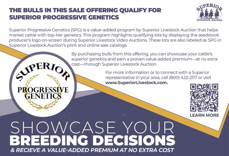 We will sell animals in catalog order. If preferred, we can have someone call you on specific lots with prior arrangements. We will also have a few phone lines dedicated to bidding on sale day but please make arrangements prior to 11:00 am on sale day. We are also happy to announce that we will have SUPERIOR PRODUCTIONS on the scene offering online bidding. More information on how to bid online available on page 17.
