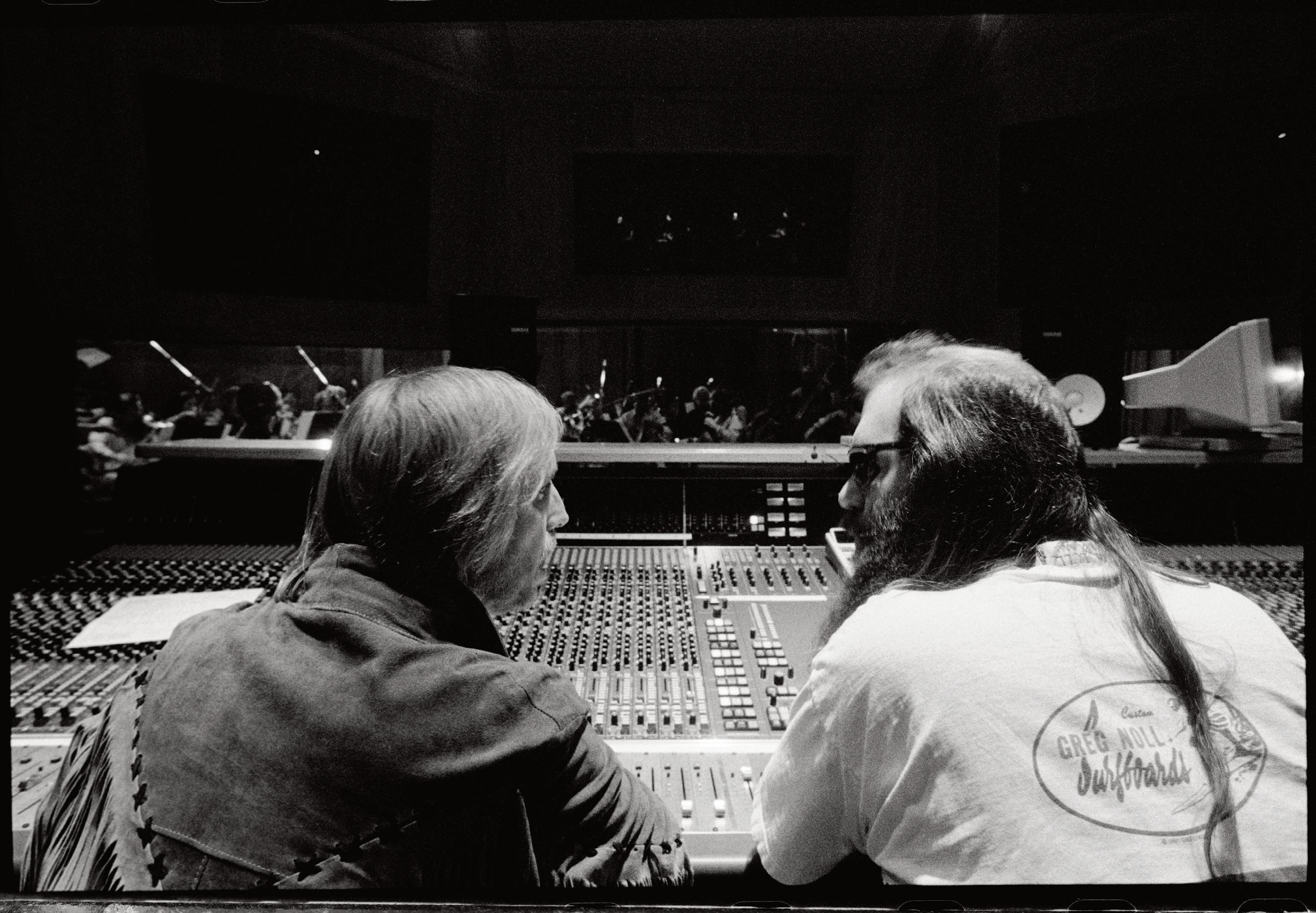 In putting this first (revived) issue of Origo together, we wanted to curate exclusive content from our new and upcoming editions. In doing so, the magic of the recording studio naturally emerged as a theme. Much like the quotes that were collected for Artist Pass, in which certain topics kept cropping up, such as songwriting, life on tour and the chemistry of the band, we found that in putting this issue together, producing, recording and life in the studio were subjects that some of our features had in common. We’ve honed in on that a little, beginning with an interview with producer Glyn Johns, and later sharing excerpts on the recording process from Artist Pass. In each quarterly newsletter, we’ll highlight a historic image from one of our editions and discuss the context around it. For this issue, a photograph of Tom Petty and Rick Rubin taken during the recording of Wildflowers offers a continuation of our theme.