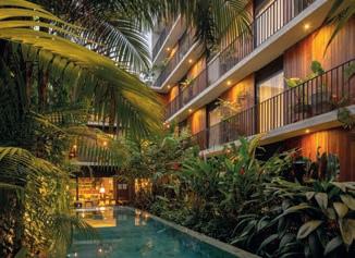L’HÔTEL VILLA AMAZÔNIA À quelques mètres de là, sur la Rua 10 de Julho, se trouvent deux hôtels qui incarnent chacun à leur manière l’élégance manauara. L’Hôtel Villa Amazônia, aménagé dans un ancien manoir restauré, déploie derrière sa façade discrète un patio tropical avec piscine, refuge de fraîcheur