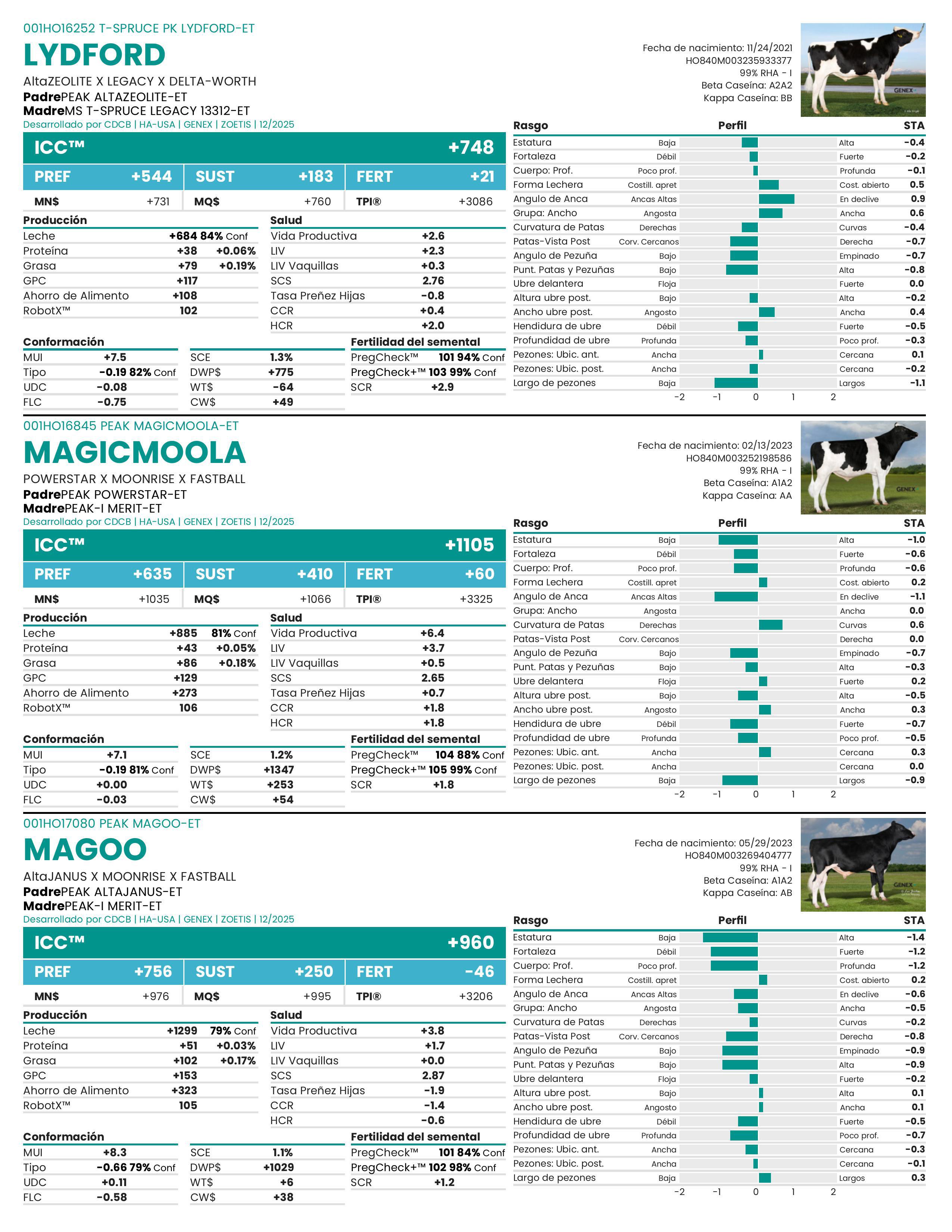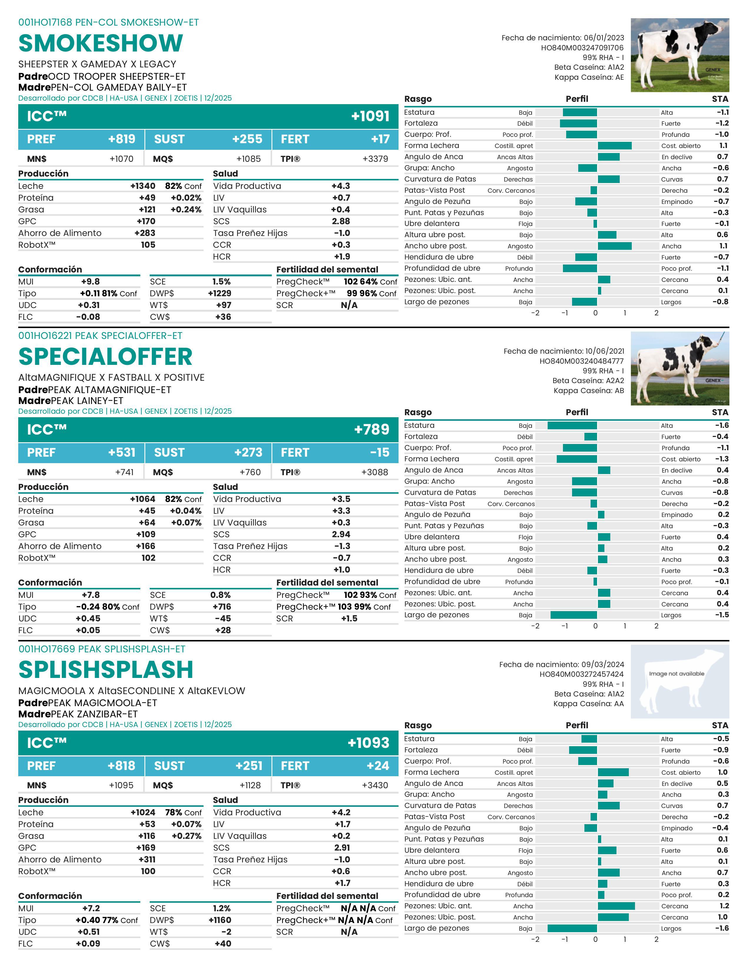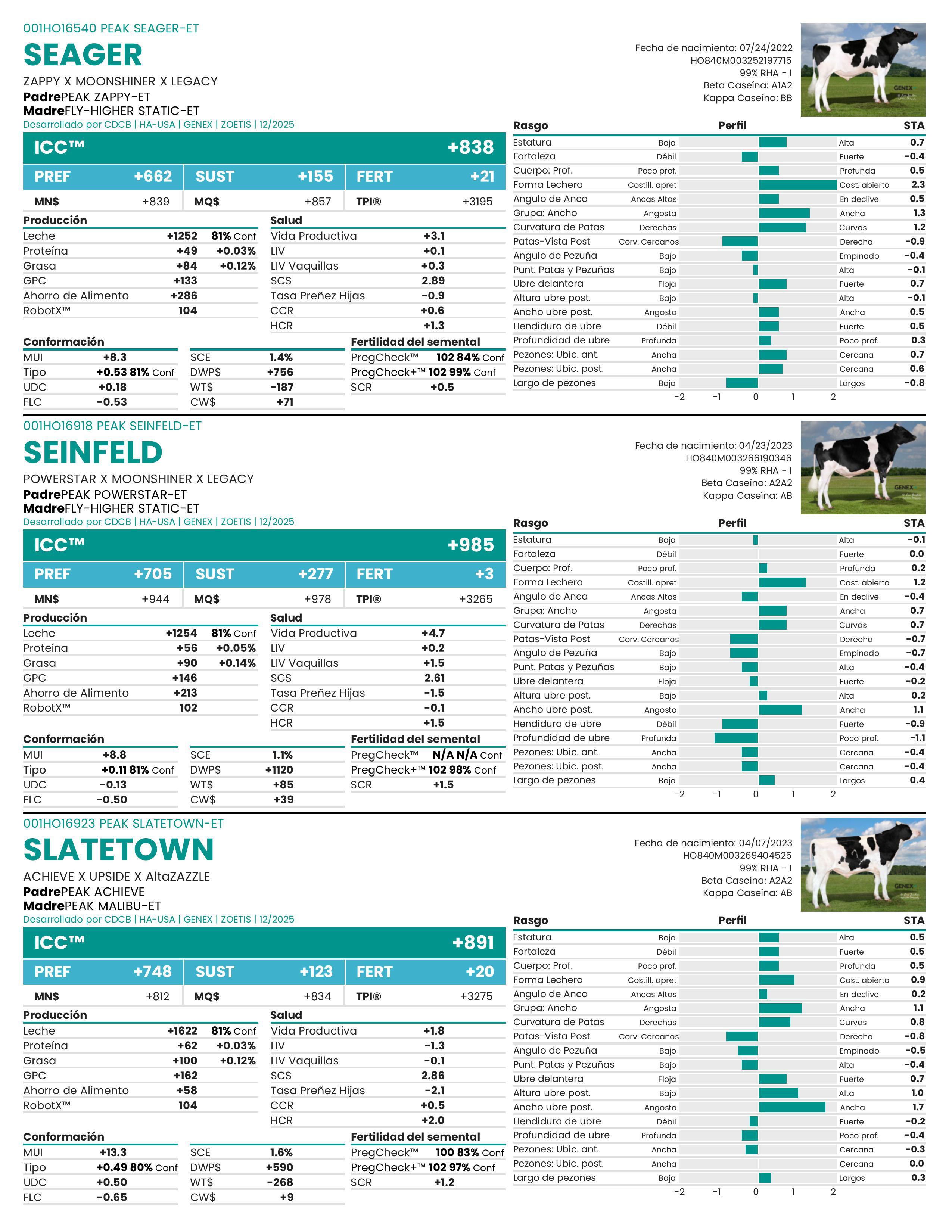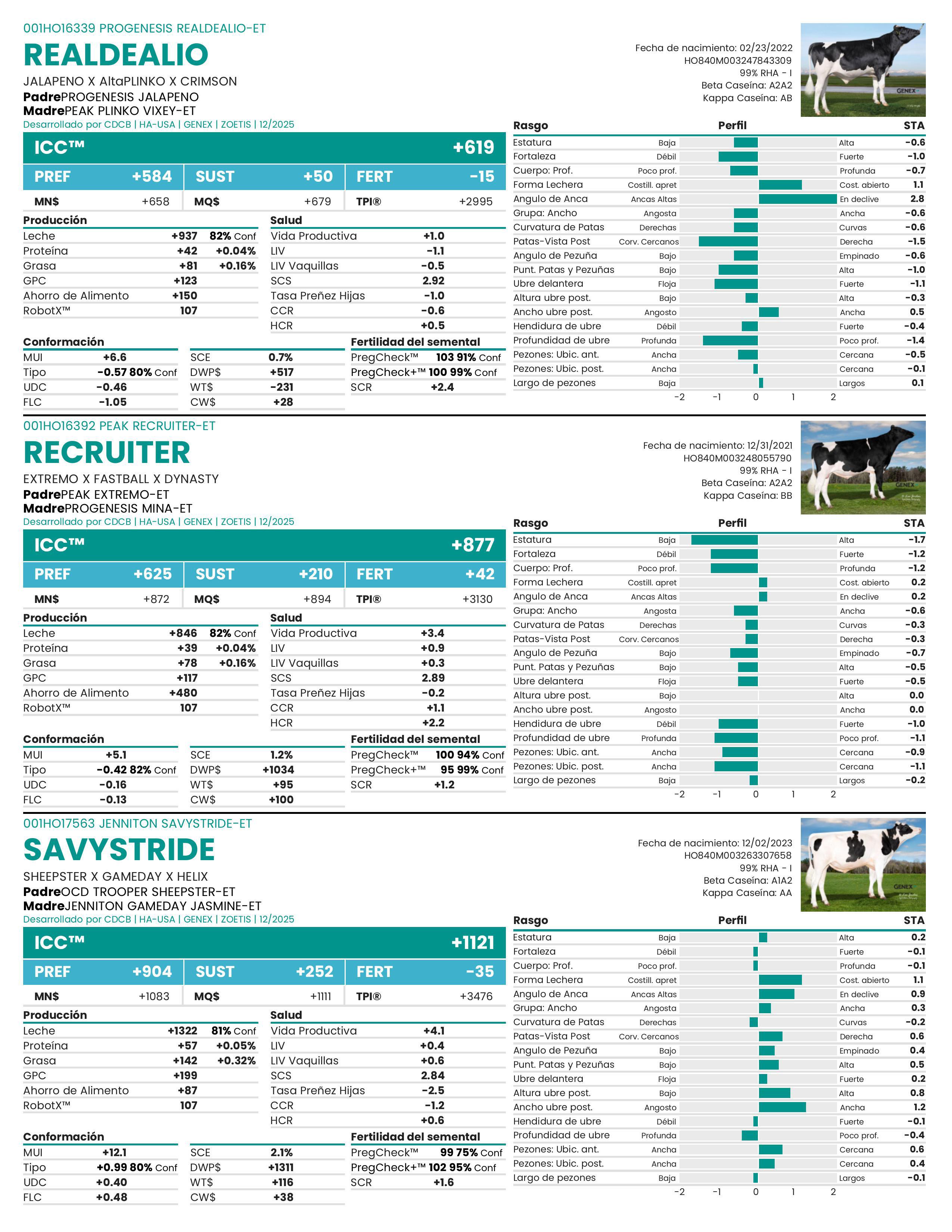 Las evaluaciones genéticas de los 18 rasgos de tipo lineal se expresan como Habilidades de Transmisión Estándar (STA).
