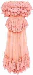 CHLOÉ LACETRIMMED OFF SHOULDERS MIDI RUFFLED DRESS IN PAPAYA PINK, $8850, CHLOÉ BOUTIQUES MADISON OR COSTA MESA, CHLOE.COM