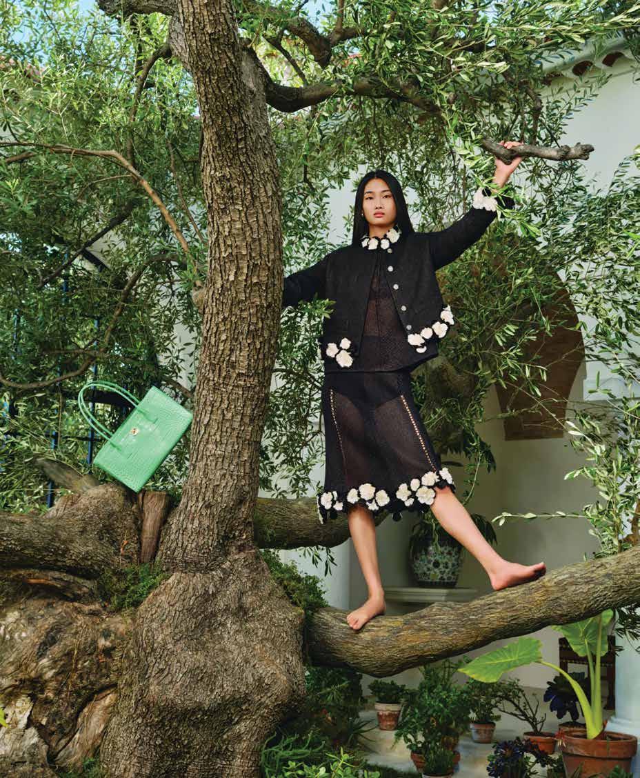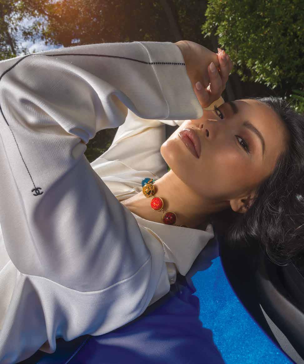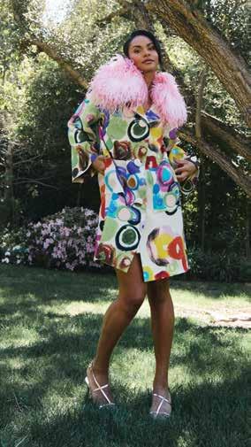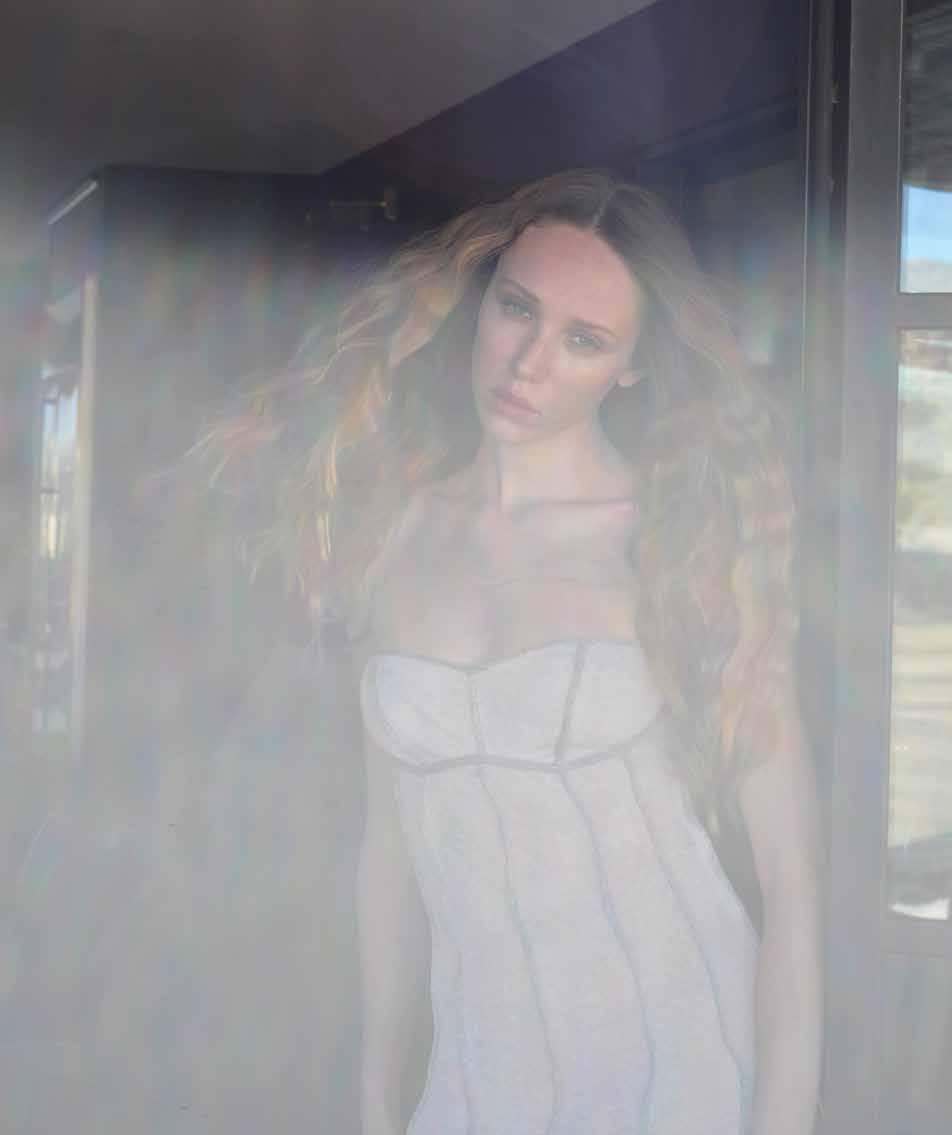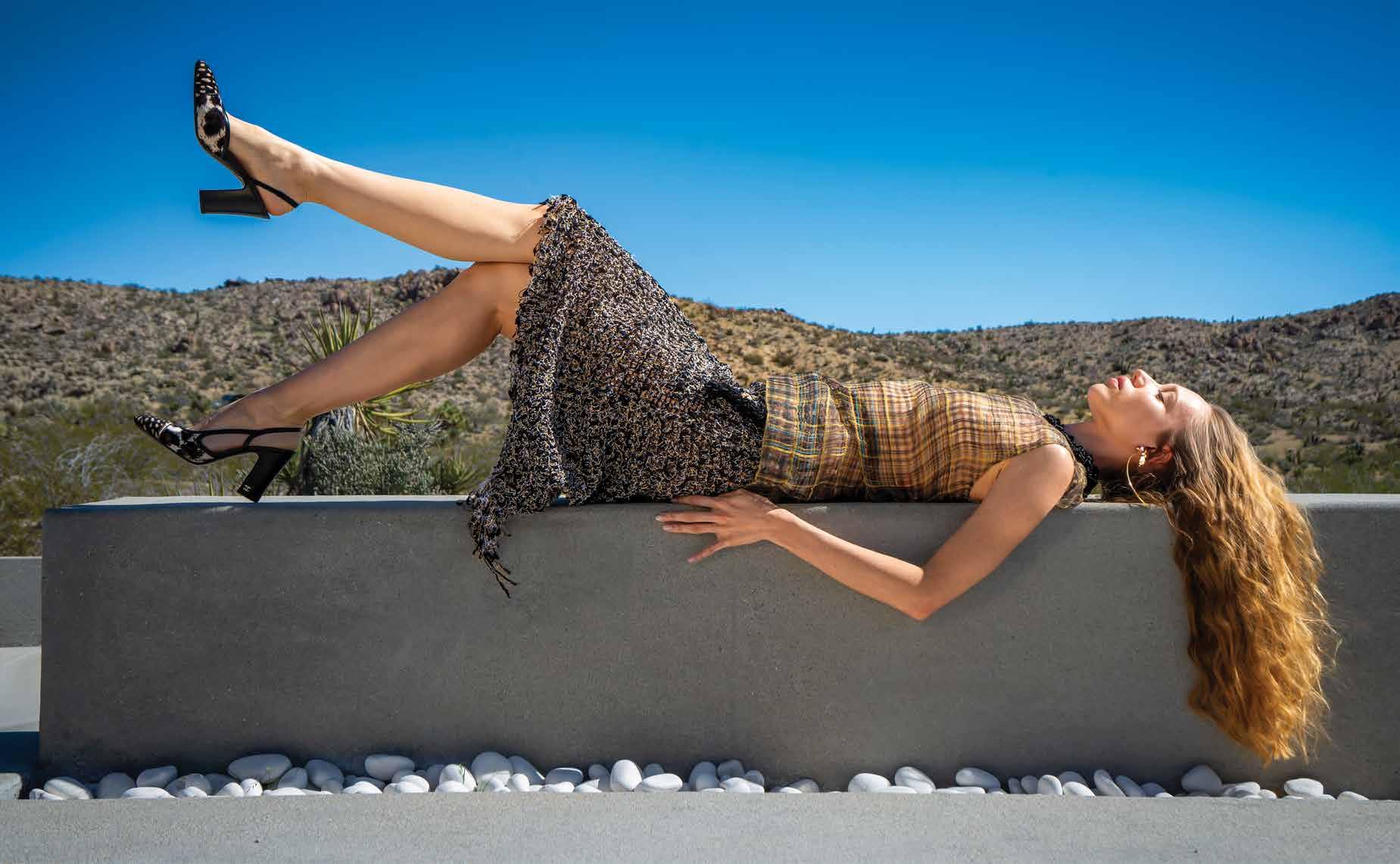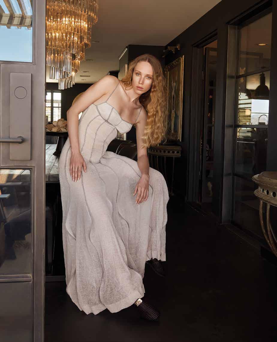 A few weeks ago, we found ourselves at Chris Collins’ Desert Dog House—a striking six-bedroom Joshua Tree oasis, complete with pickle ball court. For day one of our twoday shoot, Louis Vuitton shipped its Spring/ Summer ‘26 collection directly from New York to our remote California location. Model slash stylist slash photographer Joline Towers shot model Julia U of Bounty Models, this time styled by Ani, with Steinken on hair and Lynn Taylor on makeup (p78) . Lynn’s other hat is her accessory company called Penelope’s Parasols.