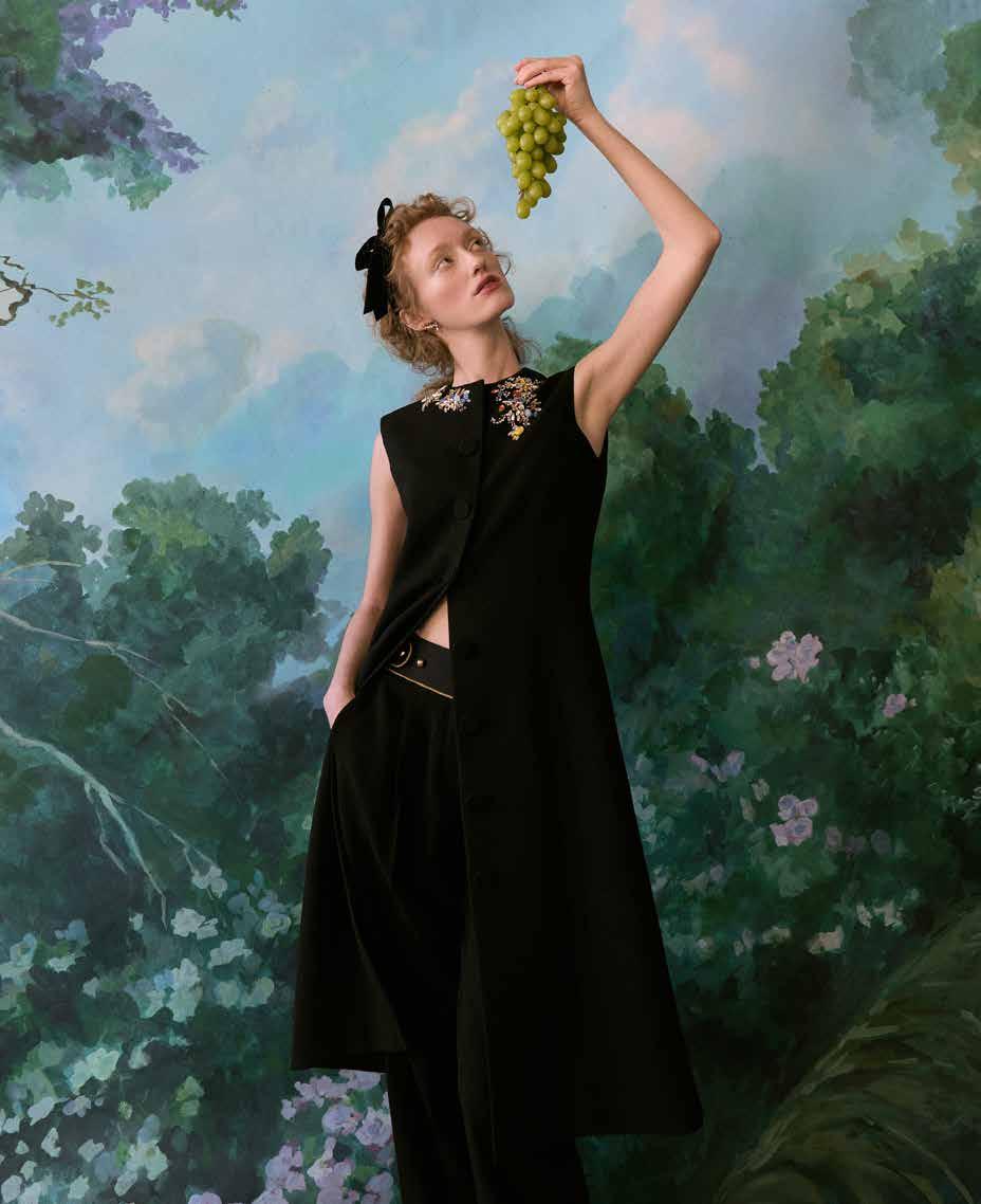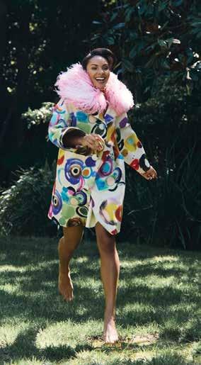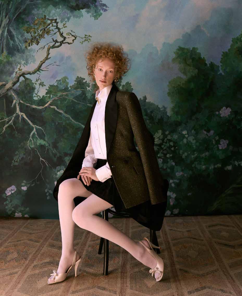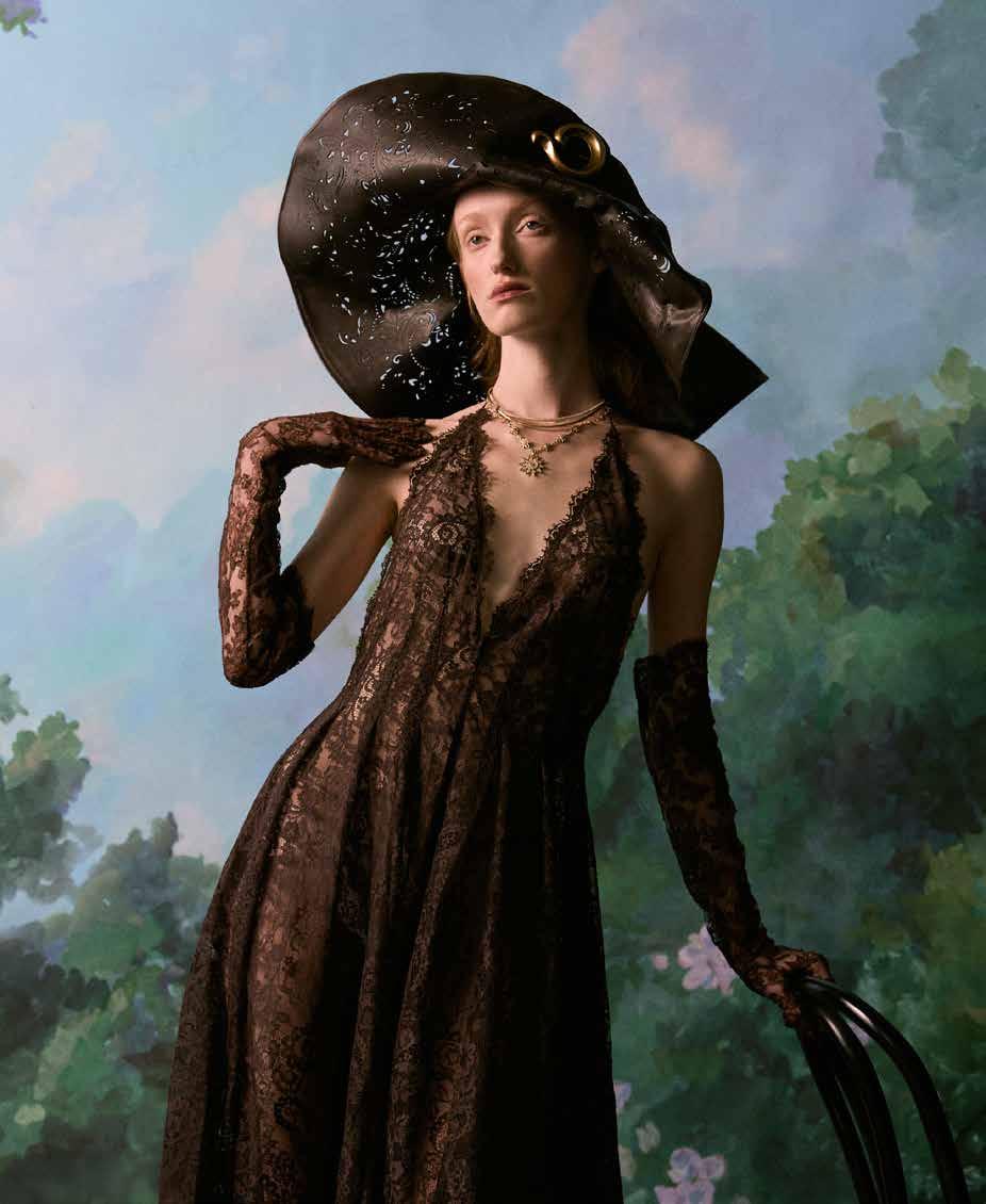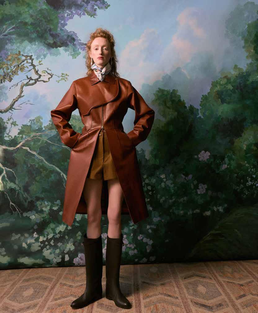 A few weeks ago, we found ourselves at Chris Collins’ Desert Dog House—a striking six-bedroom Joshua Tree oasis, complete with pickle ball court. For day one of our twoday shoot, Louis Vuitton shipped its Spring/ Summer ‘26 collection directly from New York to our remote California location. Model slash stylist slash photographer Joline Towers shot model Julia U of Bounty Models, this time styled by Ani, with Steinken on hair and Lynn Taylor on makeup (p78) . Lynn’s other hat is her accessory company called Penelope’s Parasols.