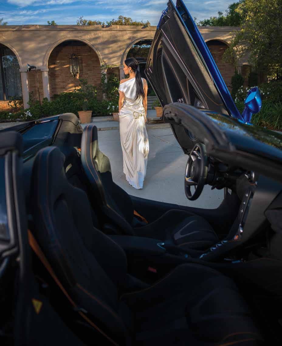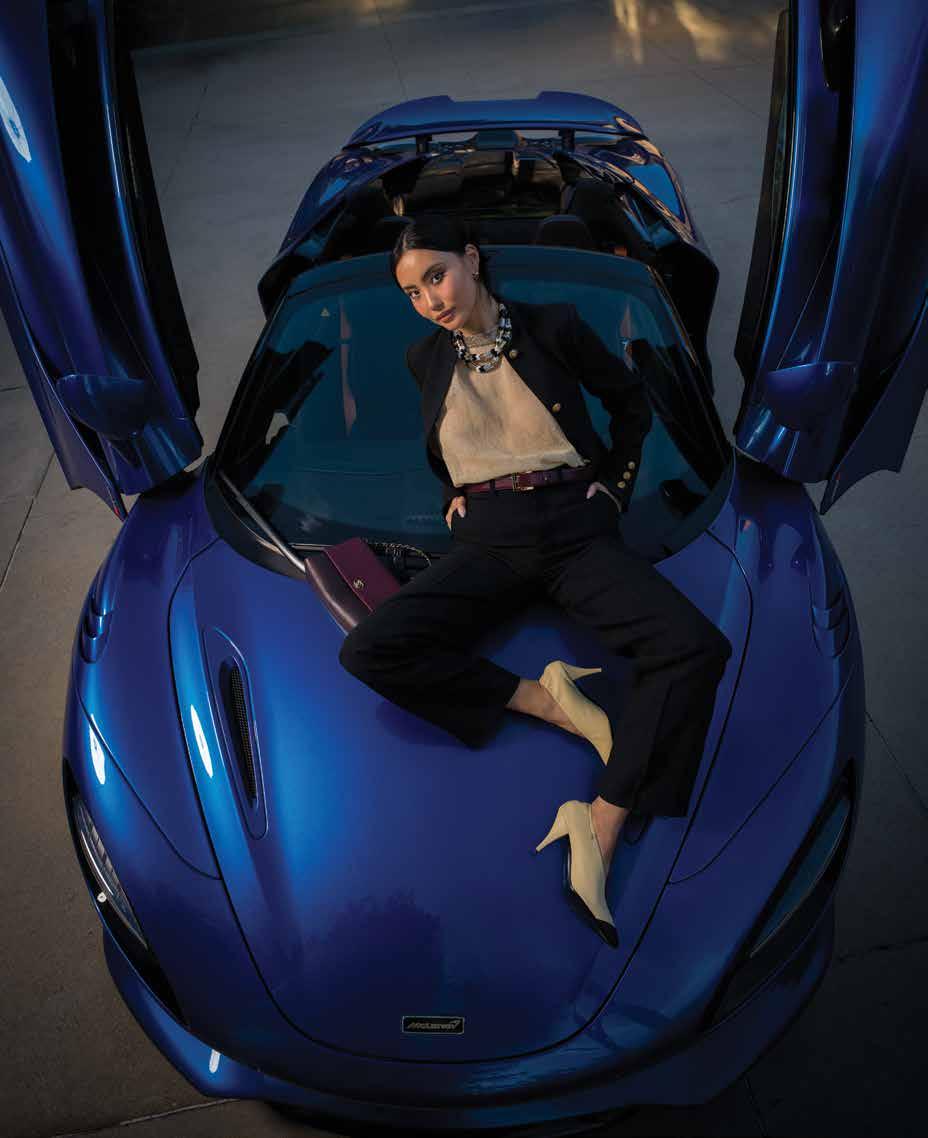 Days later, we traipsed back to Isabel’s home, where we paired a striking blue McLaren 750S convertible with CHANEL ’s Spring/ Summer ‘26 collection. This time, Ani Mun dual-roled as both stylist and model. The team was led by photog Andrew Matusik (who wears far too many hats to mention), Robert Steinken