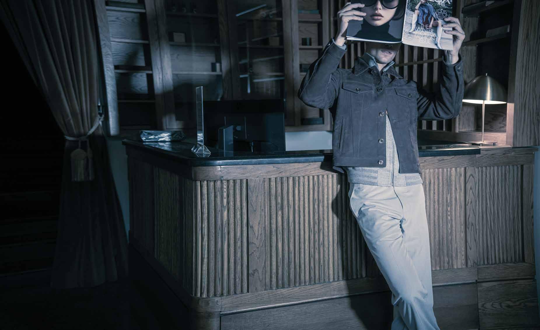 New York stylist/producer Mimi Lombardo introduced us to photographer Stockton Johnson—an inspired choice. Mimi’s team included model Izzy Wild, Wilhelmina, Peter Gray, The Home Agency (hair), Regina Harris (makeup), and Fantic Dimur (set design). This story was set at the forever accommodating Blonde Studio (p30) . When all is said and done, it’s less about our team players wearing many hats—and more about knowing they were all made to measure. G