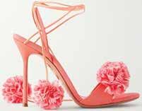 AQUAZZURA CHERRY KISS RUFFLED CHIFFON AND LEATHER-TRIMMED GROSGRAIN SANDAL, $1360, NET A PORTER
