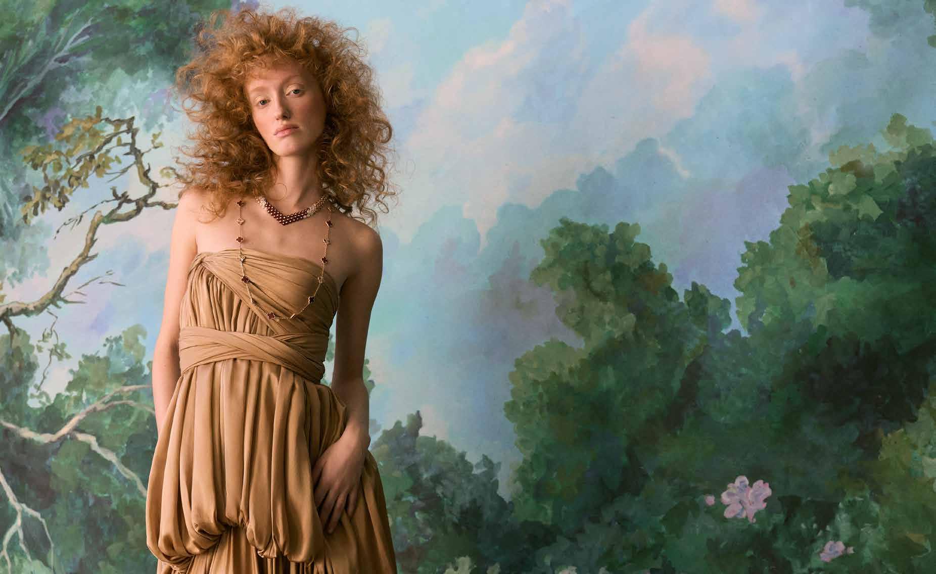 VAN CLEEF & ARPELS, ‘BOUTON D’OR’ MOTHER-OF-PEARL, CARNELIAN AND DIAMONDS SET IN 18K ROSE GOLD NECKLACE, $92,500; ‘VINTAGE ALHAMBRA 20 MOTIFS’ FEATURING CARNELIAN SET IN 18K ROSE GOLD LONG NECKLACE, $23,800, VAN CLEEF & ARPELS, VANCLEEFARPELS.COM