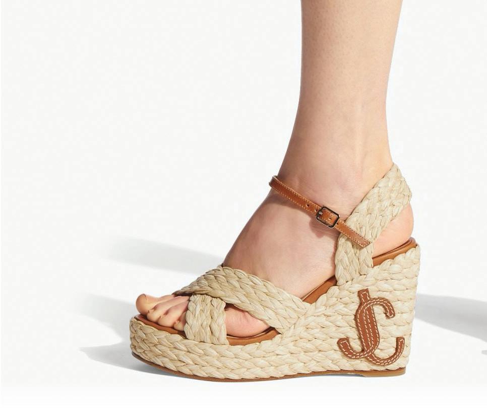 JIMMY CHOO ‘DELLENA 100’ NATURAL RAFFIA WEDGES, SALE $750, JIMMYCHOO.COM