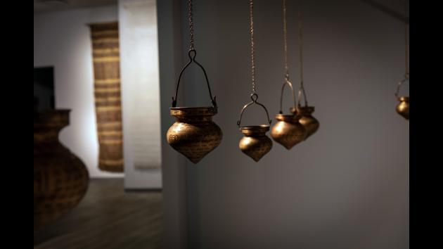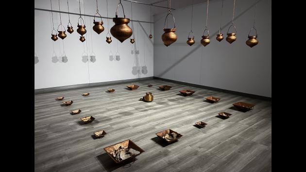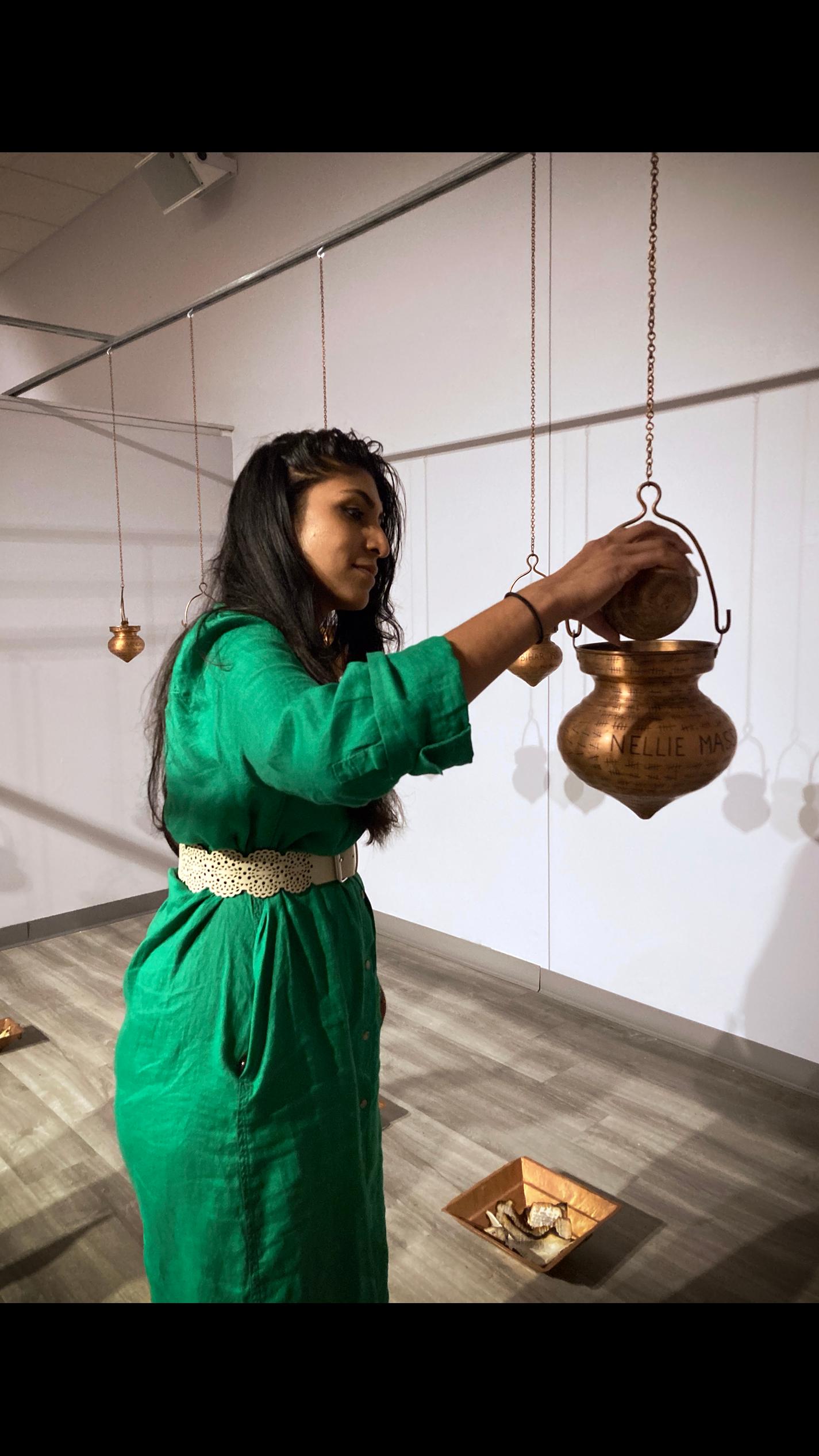 Theyarecombinedinthis workwithhavankunds,which arecoppercontainersthatare usedtolighttheholyfirein Hindutemples.