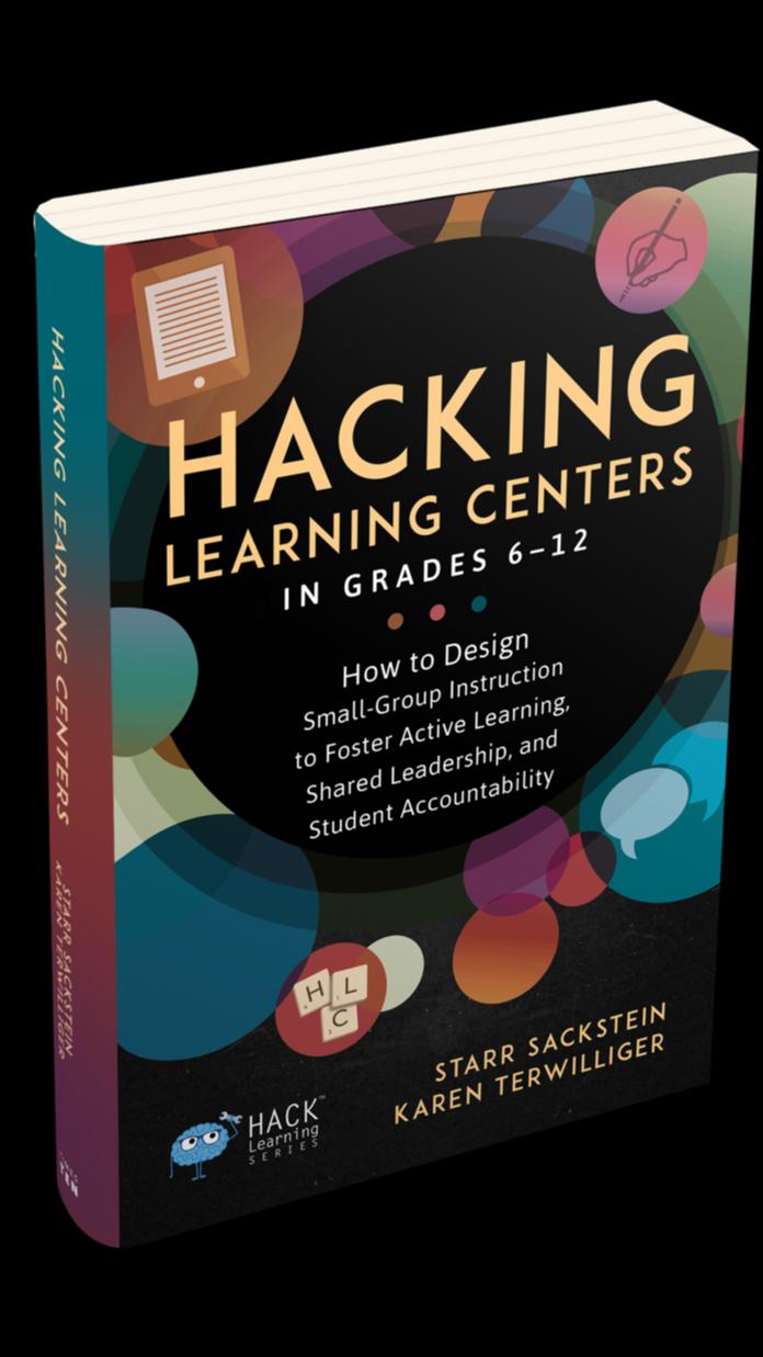 Thenewbookiscalled HackingLearningCenters inGrades6-12:Howto DesignSmall-Group InstructiontoFosterActive Learning,Shared Leadership,andStudent Accountability. Ithasbeenauthoredby StarrSacksteinand KarenTerwilliger,twoof themostrenowned teachersandeducational consultantsworking todayintheUSsystem.