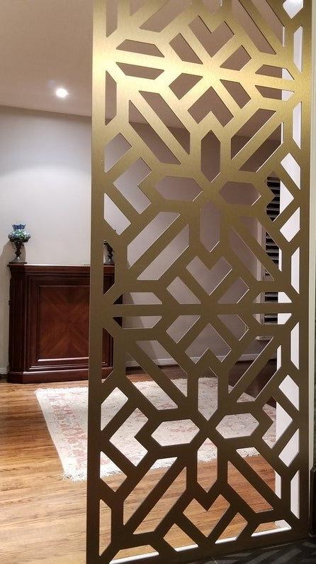 Onepopularnewroom divideristheirmodern statementCustomizable SilverRoomDividerwith WoodFrame-Aluminum Composite.