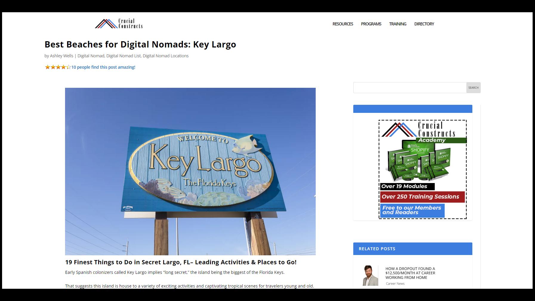 Chancesareyoubecame adigitalnomadbecause youwantedtobuildyour brandwhiletravelingthe worldandhavingfun. Haveyoubeensowrappedupin yourworkthatexploringhasfallen bythewayside?Neverfear,if you'revisitingKeyLargo,Crucial Constructshasreleasedaguide foryou.