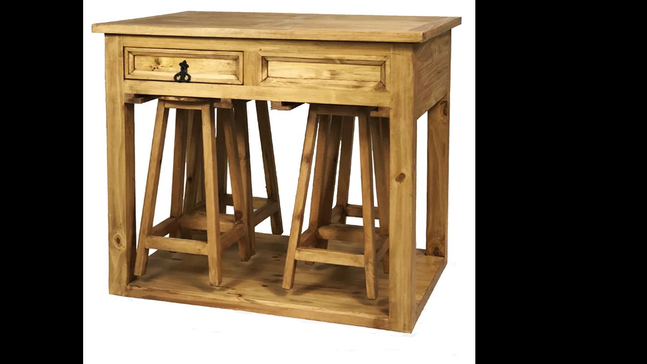 AllRusticsForLess productsarehand-hewn ofsolidwood,crafted andpartiallyassembled inMexico. Theretaileralsocarriesa varietyofpiecescrafted usingreclaimedwood, includingcabinets,coffee tables,shelvingunits,and more.
