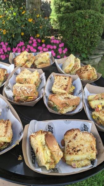 Thebasic“backyardbashes” menuincludesfavoriteslikemac andcheesebitesforappetizers, aswellasmoreuniqueoptionslike vegandumplingsservedwith gingersoysauce. Fortheentreeslidersandsides, youcanchoosefrommeatslike pulledporkandbeerBBQbrisket, allwithasidesaladandwaffle fries(veganoptionsavailableon request.)