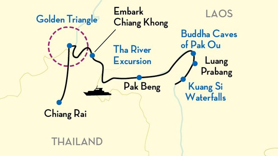 ThejourneysetsofffromChiangRaitothe GoldenTriangle,wherethebordersof Myanmar,Thailand,andLaosmeet.Youwill thensetsailtoLuangPrabangviatheMekong River.