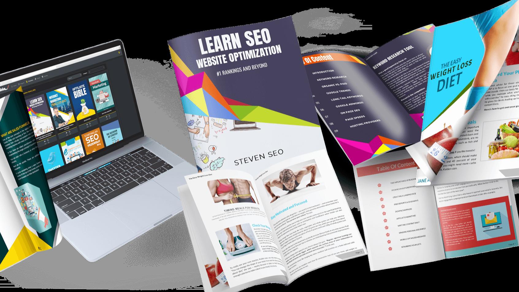 Sqribble'seasy-to-useprocessstartswithpickinganeBooktemplatefrom50eye-grabbing designsacross15profitablenichecategories.Youthenaddyourcontenttothetemplate. ThecontentcanbeinstantlyextractedfromaWordfile,URL,orSqribble’sbuilt-in contentengineofover1,000instantnichearticles.Itcanalsobewrittenfromscratch.