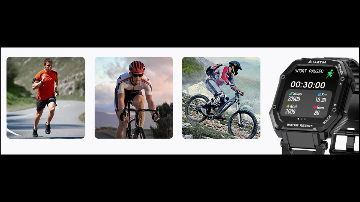 Thesmartwatchismadewith shockproofmaterialsandhas a45-daybatterylife,makingit arobustsolutionforthose whoengageinmoreextreme sports.