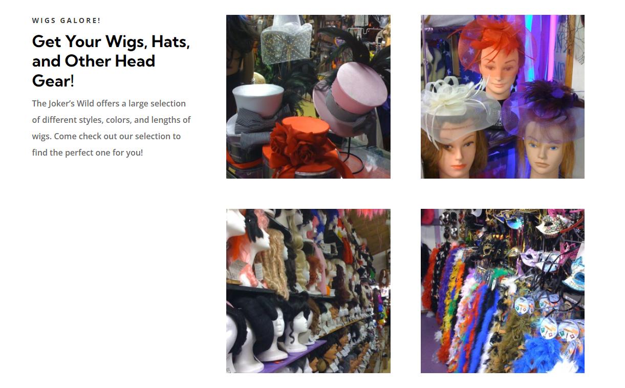 Theircostumesareidealfor localtheaterperformances,as theyaremuchmoreaffordable thanpriciercustom-made options. WhenHalloweencomes around,Joker'sWildisalsothe