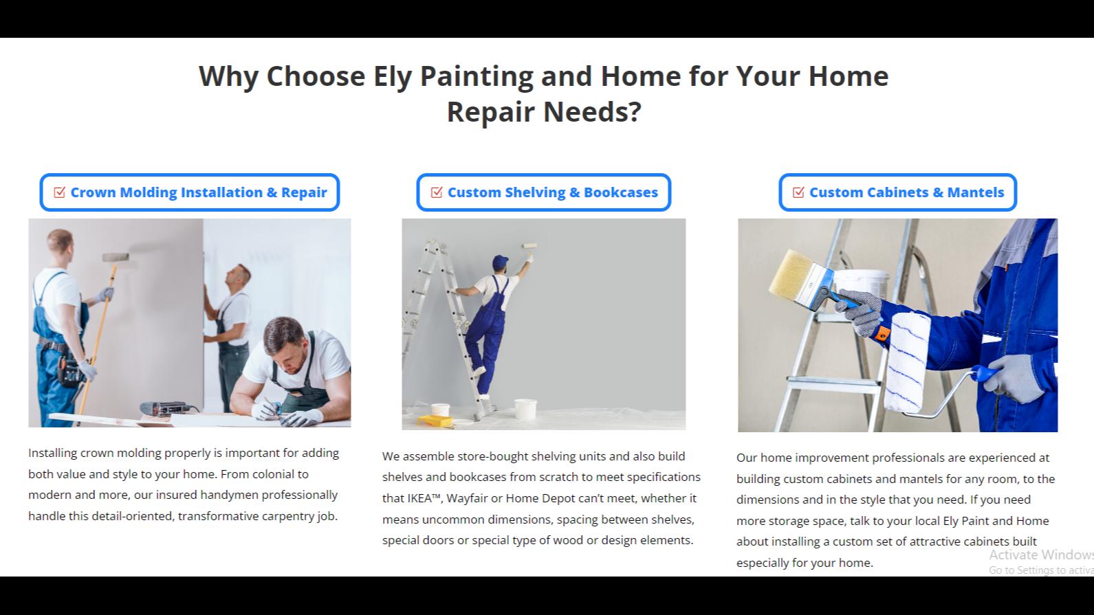Likeanartistwitha brush,thesecarpenters canmakejustabout anythingwiththeirtable saw. ThecarpentersatEly's PaintingandHomeServices canmakeyouacouchthat's betterlookingandsturdier thanthosebigboxbrands.