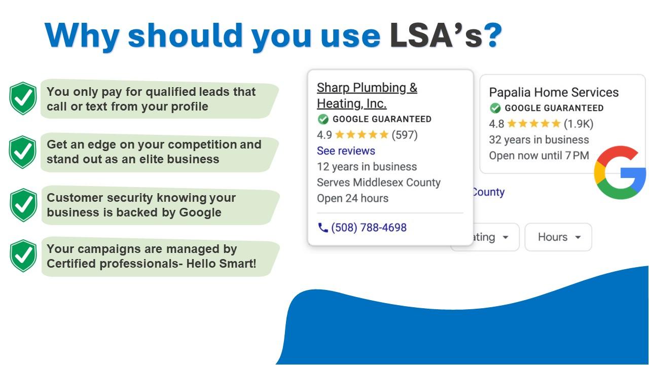 LocalServiceAds, however,aredesigned specificallyforlocal businessessuchas plumbers,electricians, locksmiths,andsimilar serviceproviders.