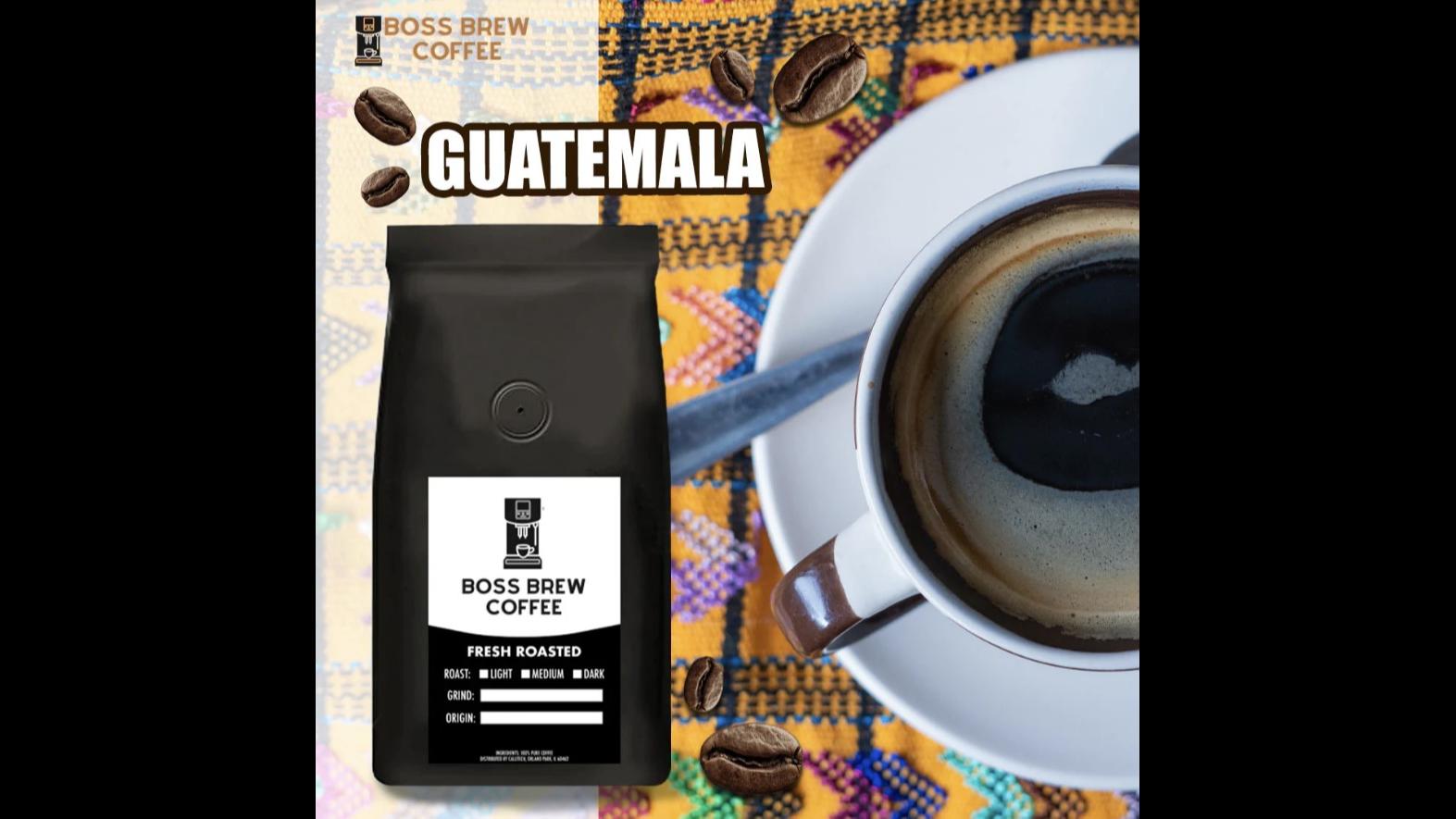 Guatemalaistheninthlargestcoffee-growing countryintheworld, producing2.3%ofthe coffeeexported worldwide. Unlikesupermarketsthatstore coffeeblendsforweeksor monthsafterexportation,Boss BrewCoffeeprovidesfreshly roastedwholebeansshipped directlytoyou.