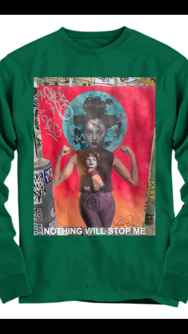 Oneofthemorepopulardesignsof thenewcollectionisthe“BLUE MOONGIRLNothingWillStopMe” t-shirt.