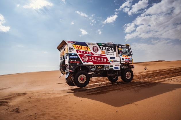 Valtrfinishedtheninth stageoftheDakarinan excellentthirdposition Twoplacesbehindhimistoday'sseventhplaced MartinSoltys,alsoinaTatra. RobertKasakisimproving steadily,hehasmovedupto 20thoverall,whilefinishing 15thtoday.